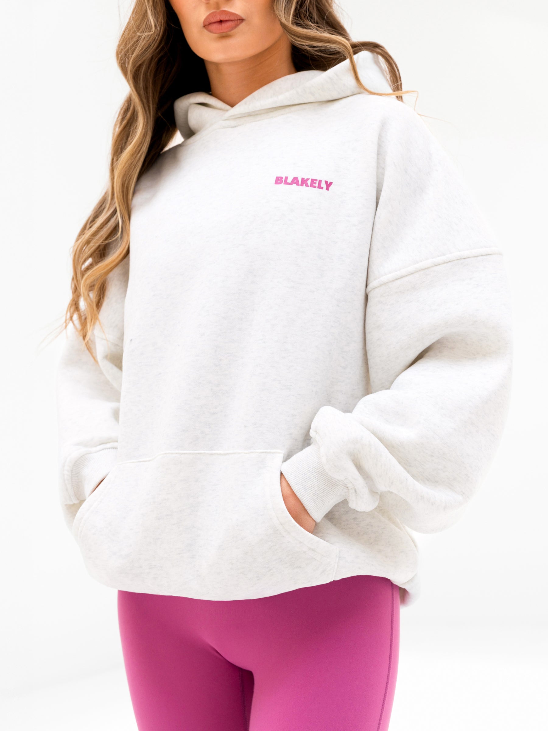 Our Amelie Hoodie features an oversized fit and a roomy front pocket. making it perfect for everyday activities and lounging. It also showcases our Blakely branding in bold on the back. which complements the rest of the collection.