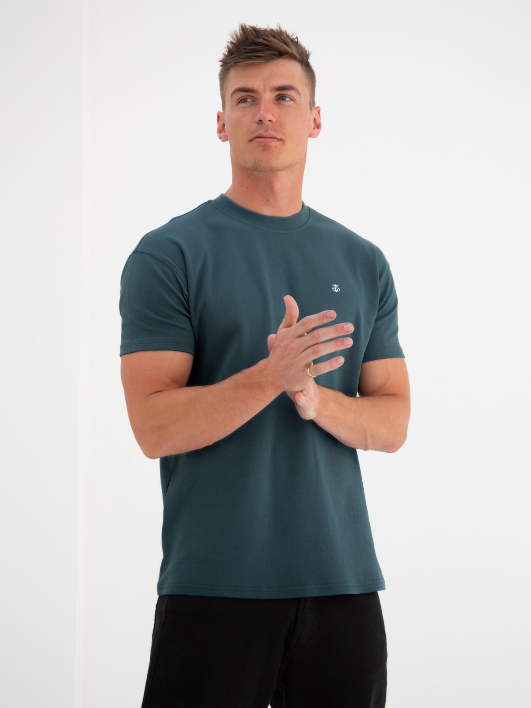 Introducing our Anchor Relaxed T-shirt in Teal Green. crafted from a soft cotton blend with a relaxed fit. The t-shirt features a crew neck design and showcases our embroidered Anchor logo on the chest and back.