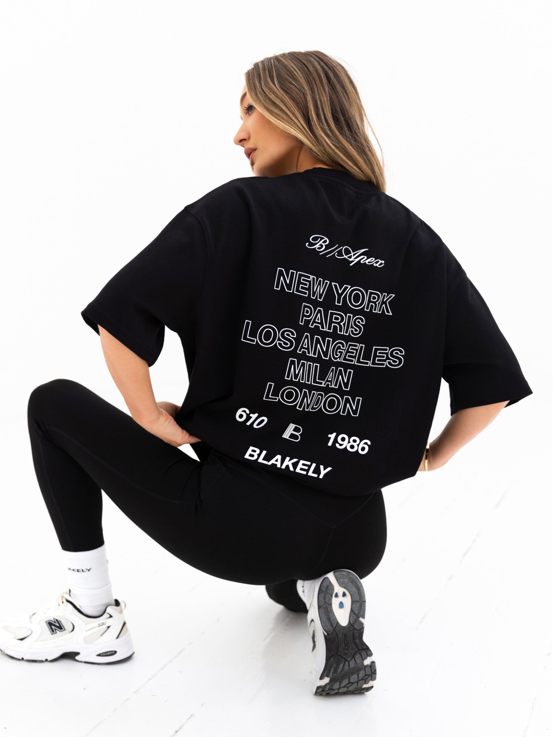 Our Apex City T-shirt features an Ultra Oversized fit. short sleeves and a crew neck design. making it ideal for everyday activities and lounging. It also showcases our Apex Cities branding on the chest and back. which complements the rest of the collection.