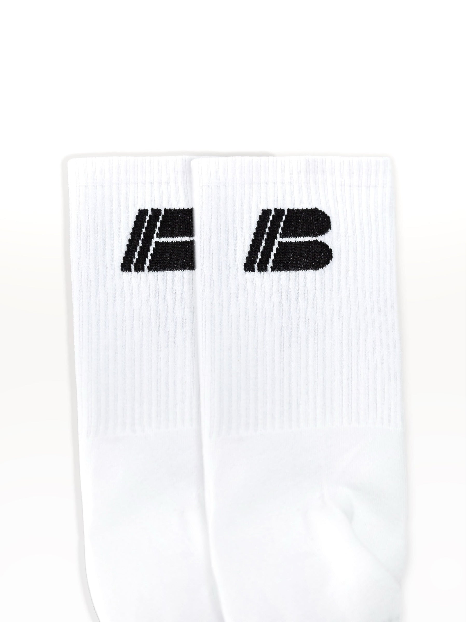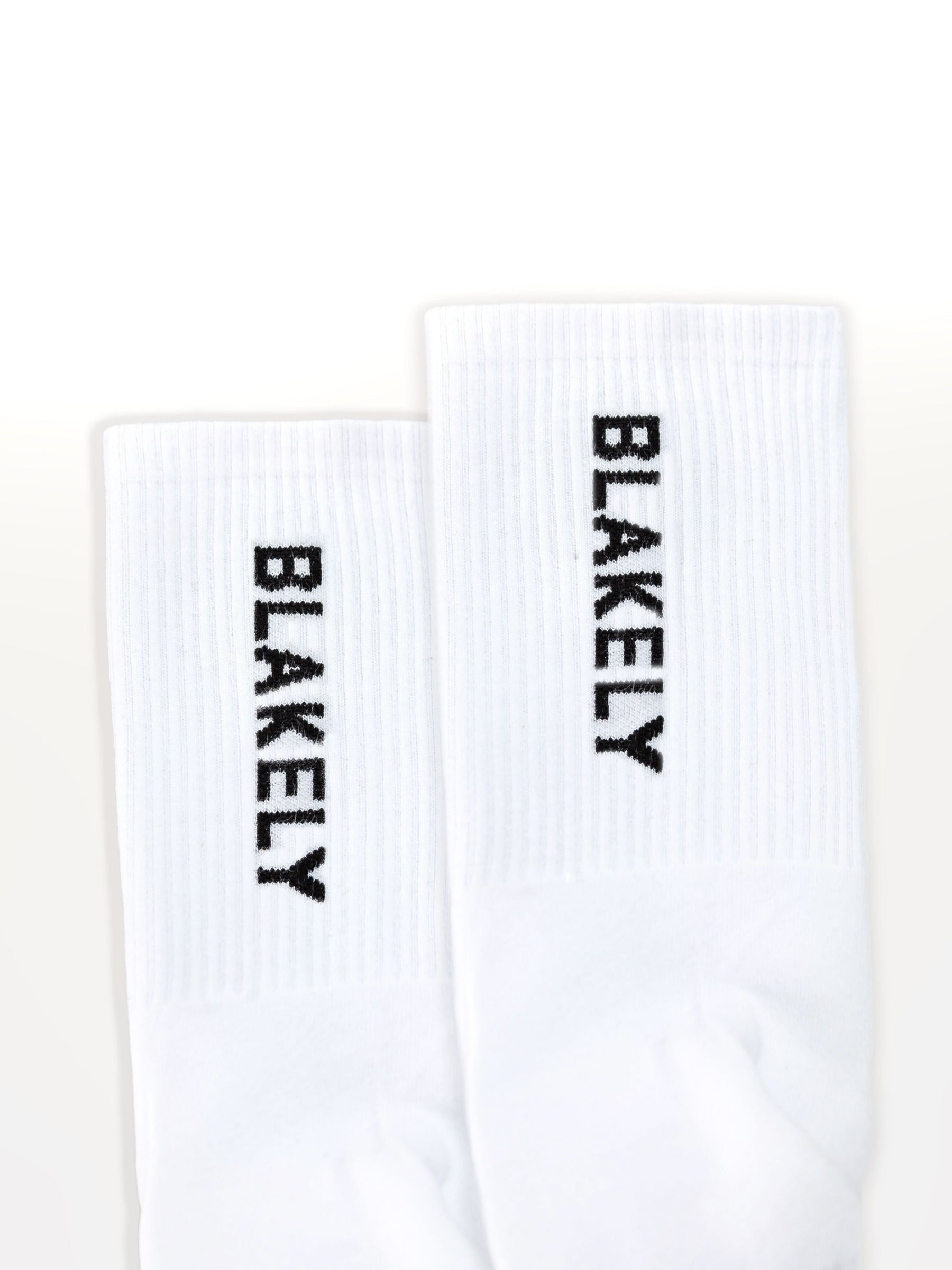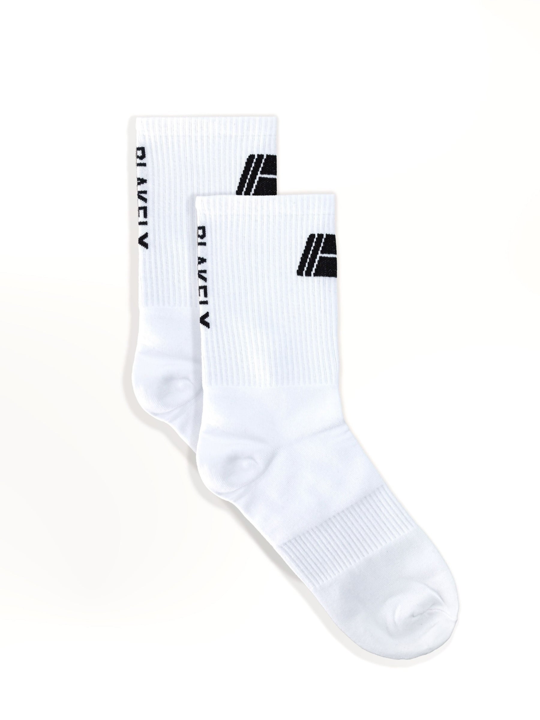 Part of this collection is our Apex Training Socks in white. these socks are crafted from a stretchy. breathable cotton blend. They have a crew length and feature our Apex Branding.
