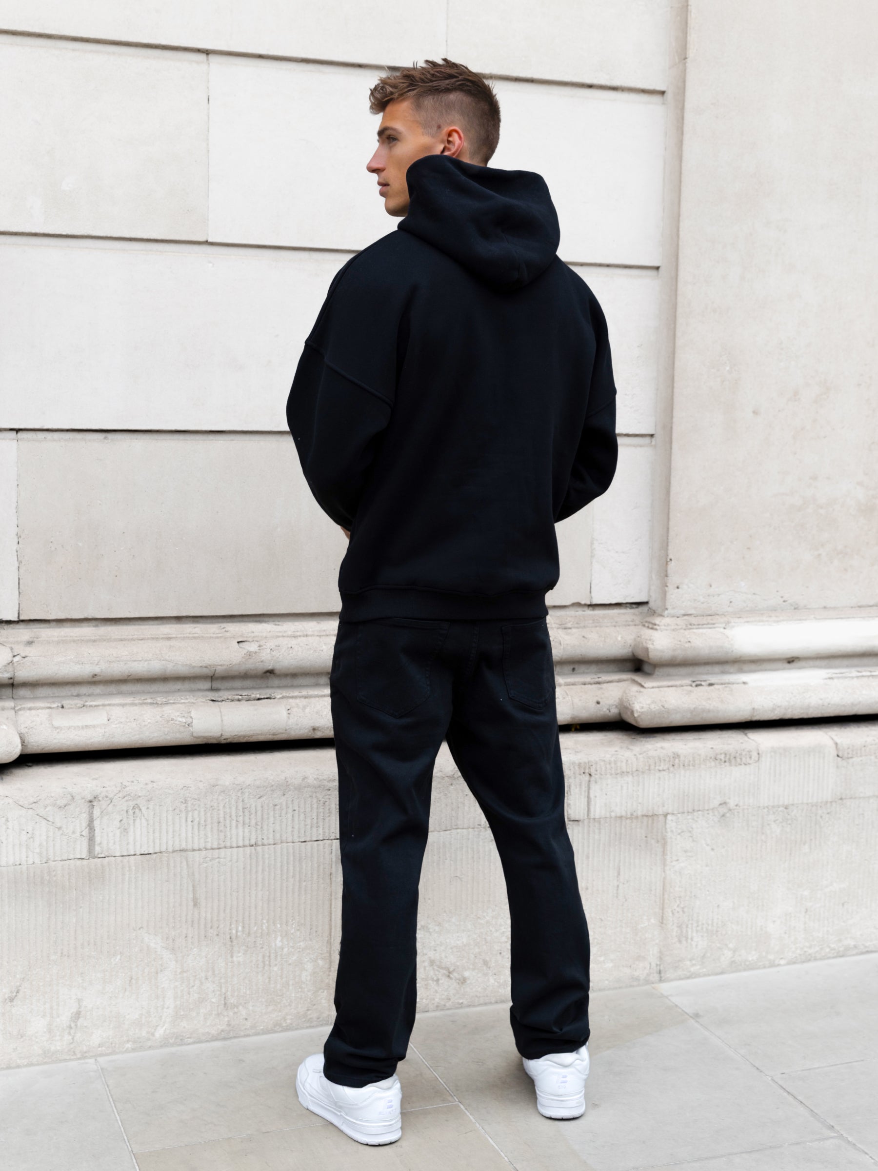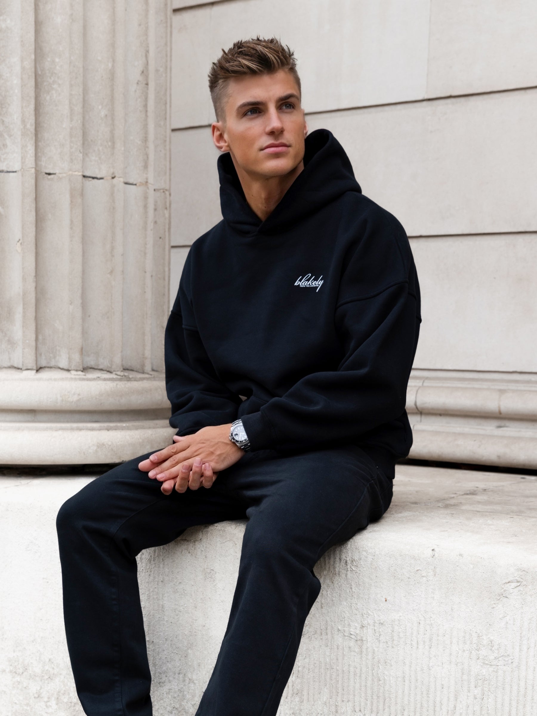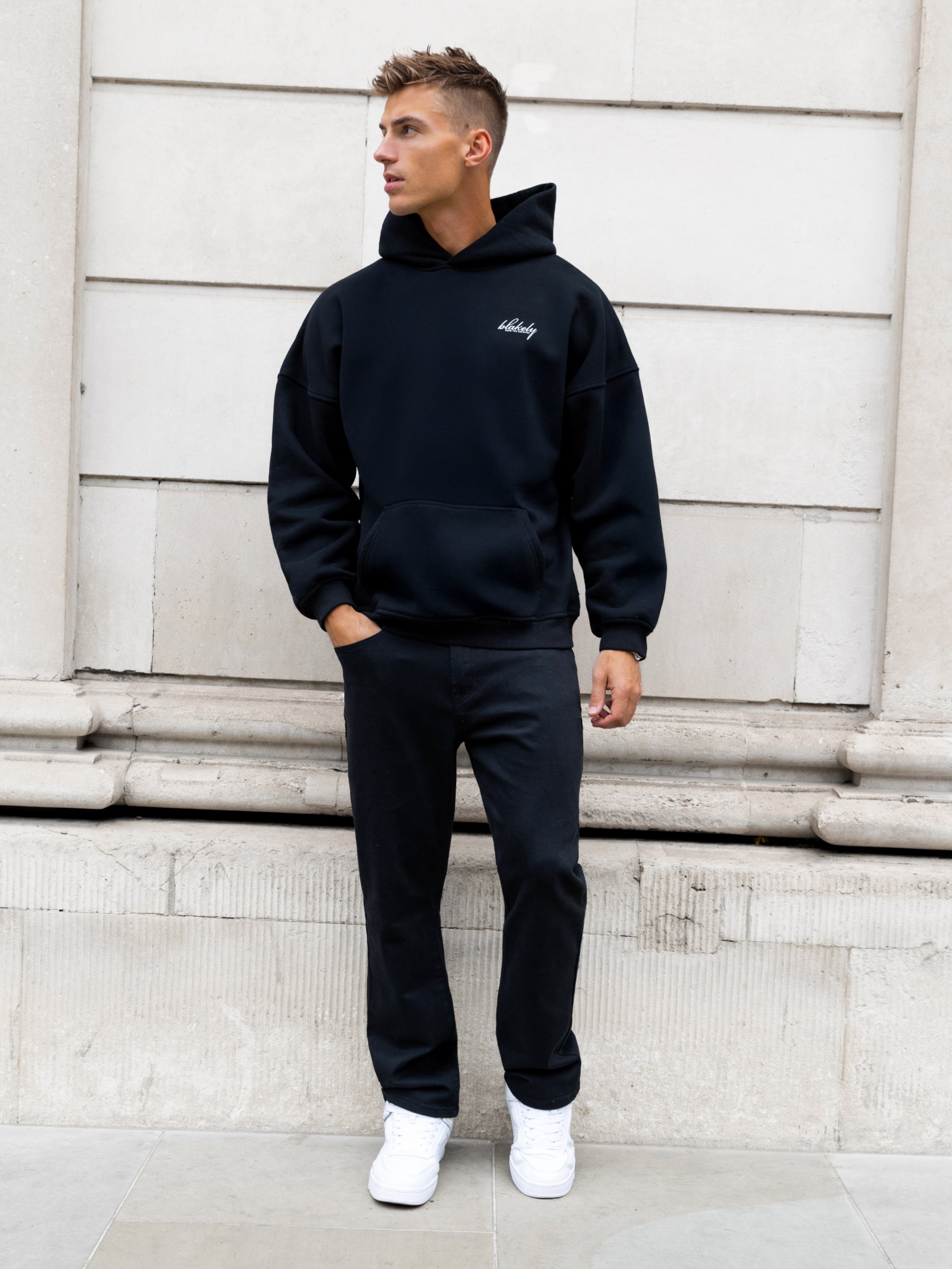 Our Austin Hoodie in Black features a relaxed fit and a roomy front pocket. making it ideal for everyday activities and lounging. It also showcases an script logo. which complements the rest of the collection.