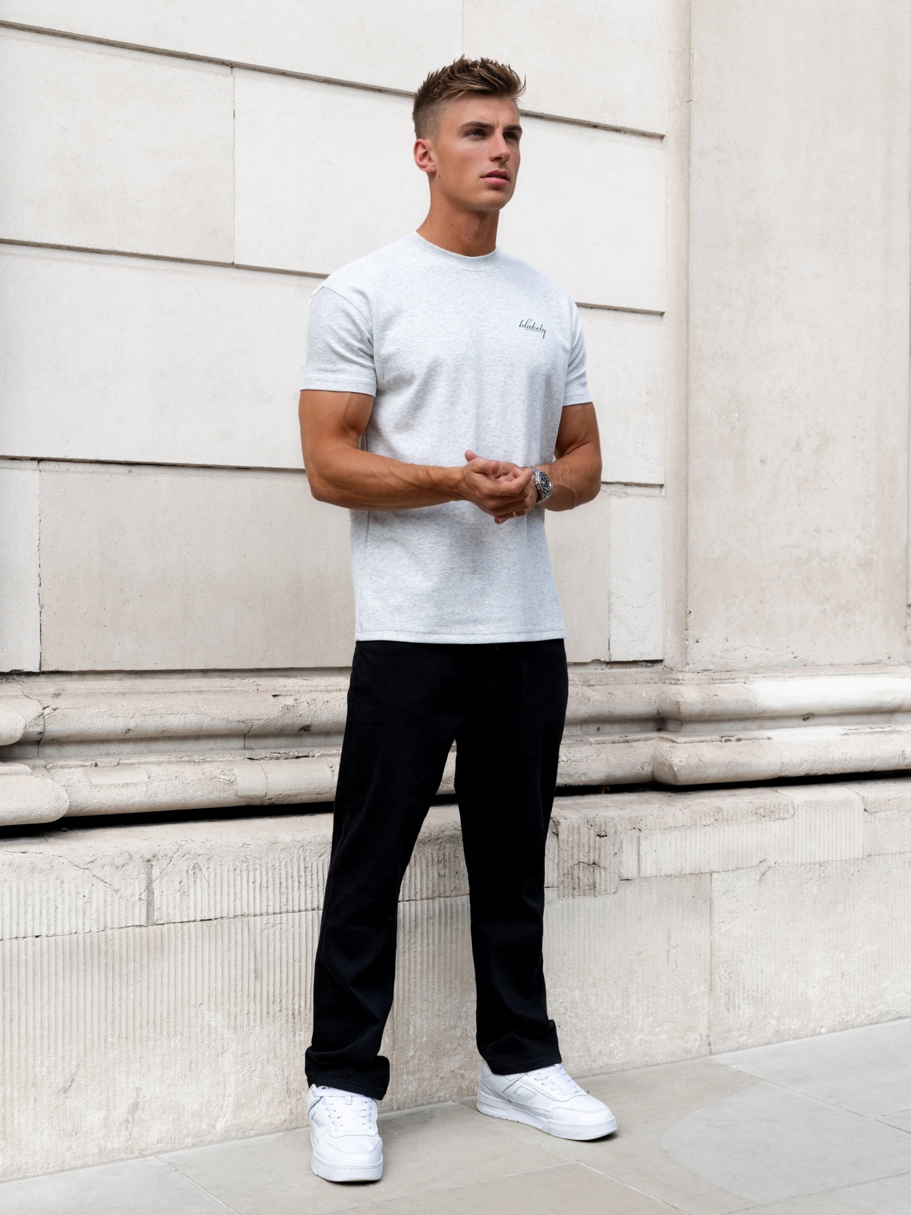 Introducing our Austin T-Shirt in Flat White. crafted from a soft cotton blend and designed with a relaxed fit for comfort. This T-Shirt features a small Blakely logo in a script font on the front.