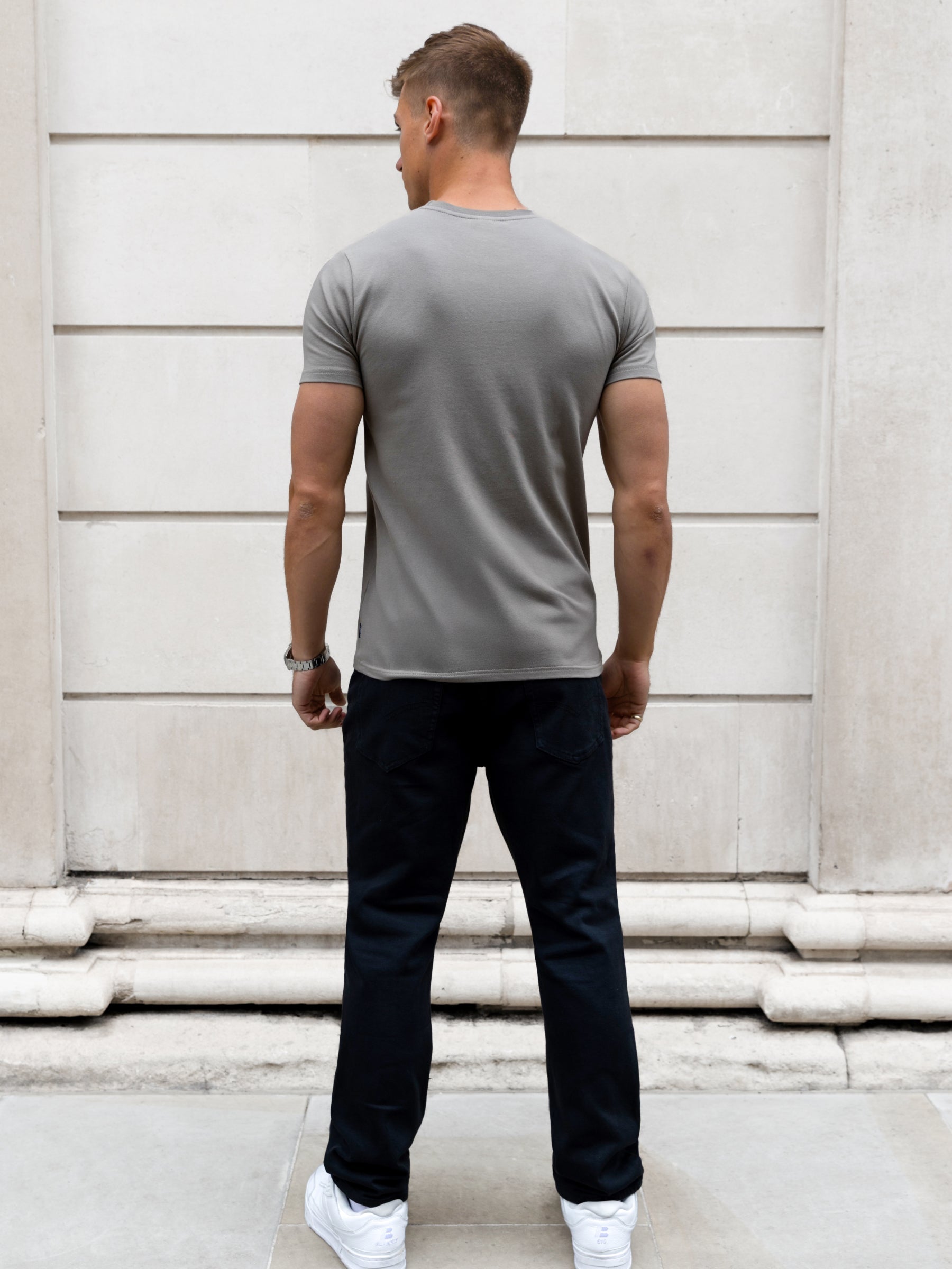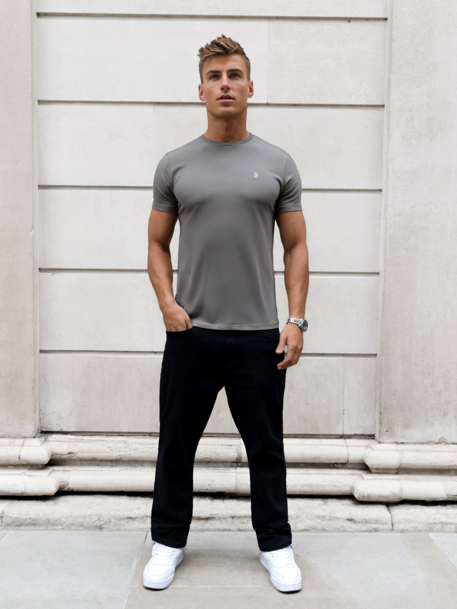 Introducing the Conrad T-Shirt in Safari Green. a slim-fit t-shirt made from a soft cotton blend. It has short sleeves. a crewneck collar. and is finished with new Anchor branding on the chest.