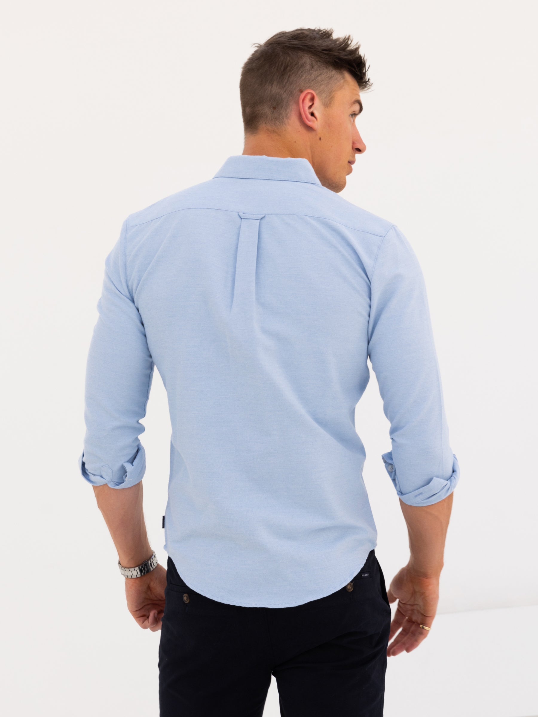 Our Dallas Long Sleeve Shirt in Blue has been designed for a modern. tailored look. Coming in a range of seasonal colours. these button-up. collared shirts feature our anchor logo embroidered on the chest and a slim fit design.