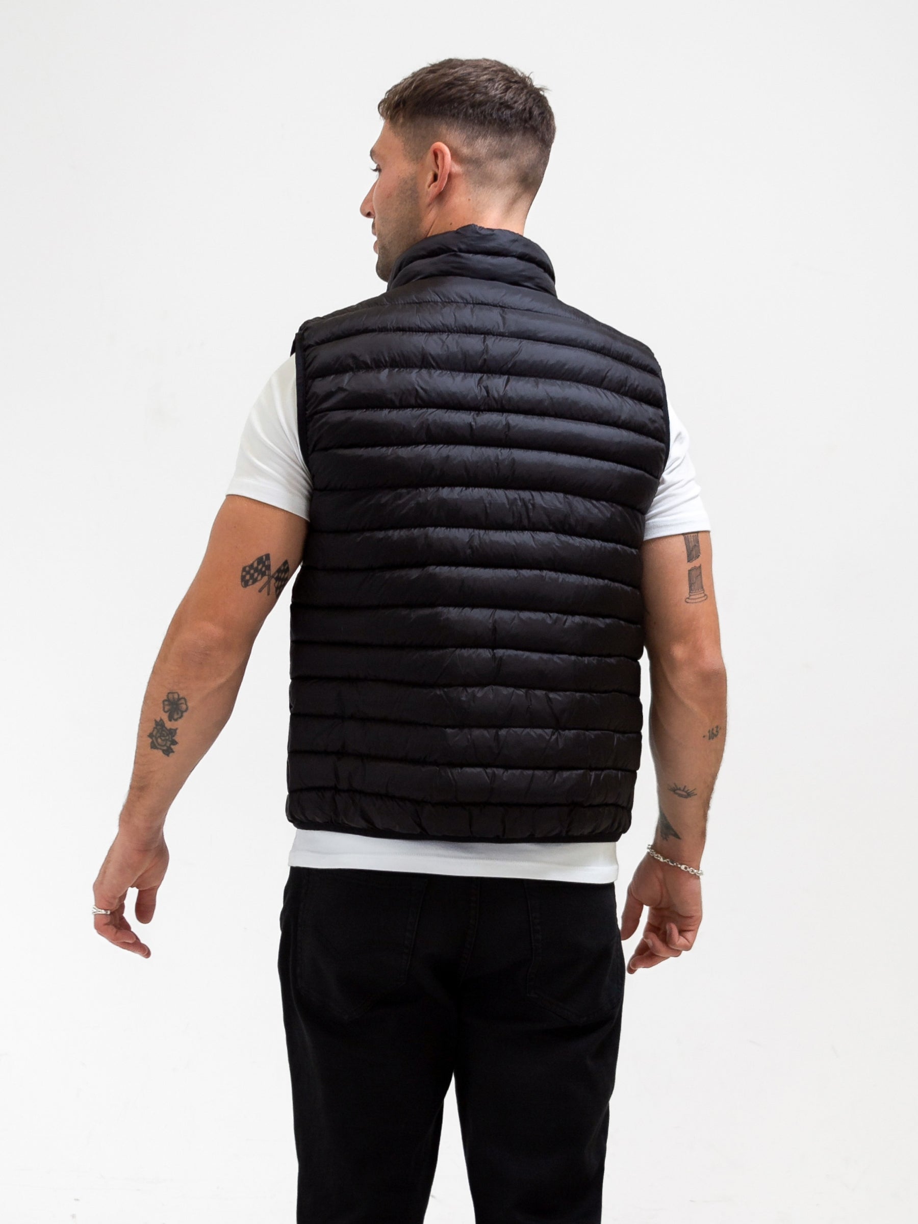 Our Ellis lightweight gilet in black. is a sleeveless vest that provides warmth without adding bulk. It is made from breathable. shower-resistant materials. making it perfect for layering and offering comfort and mobility in cooler weather. The gilet has been finished with our Blakely branding on the chest.
