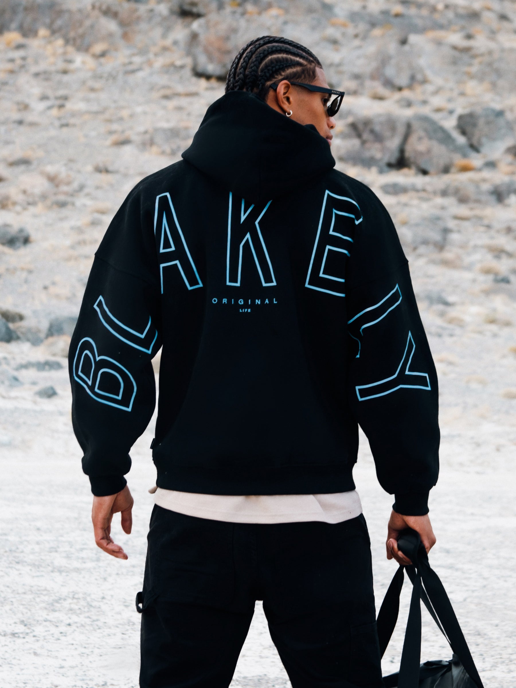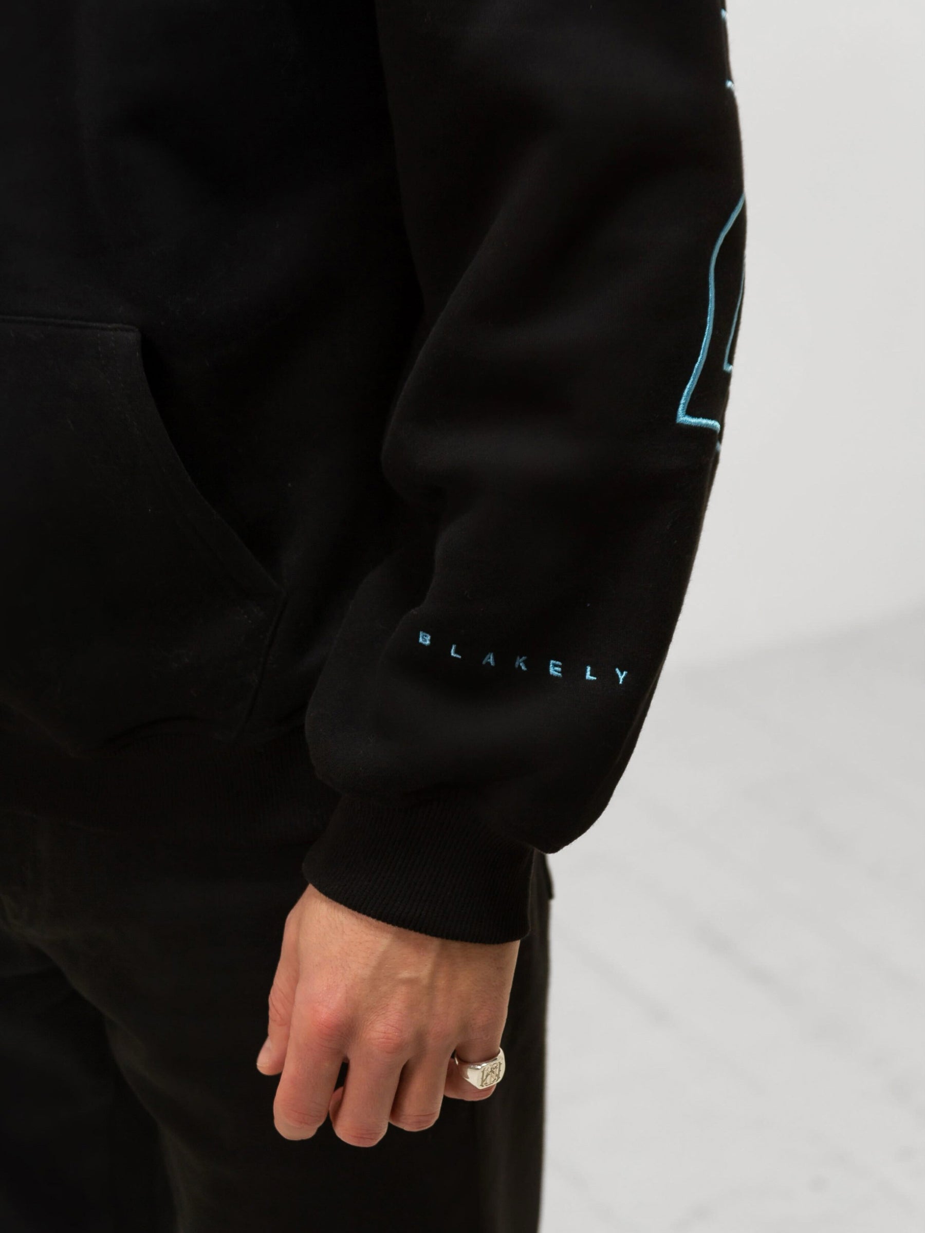 Our best-selling Idris Hoodie is now in an embroidered outline version. Made from a soft cotton blend with an oversized fit. the hoodie features a ribbed hem. cuffs. and a large front pocket. It showcases our outlined logo embroidered across the back and arms. offering a clean and bold representation of our brand.