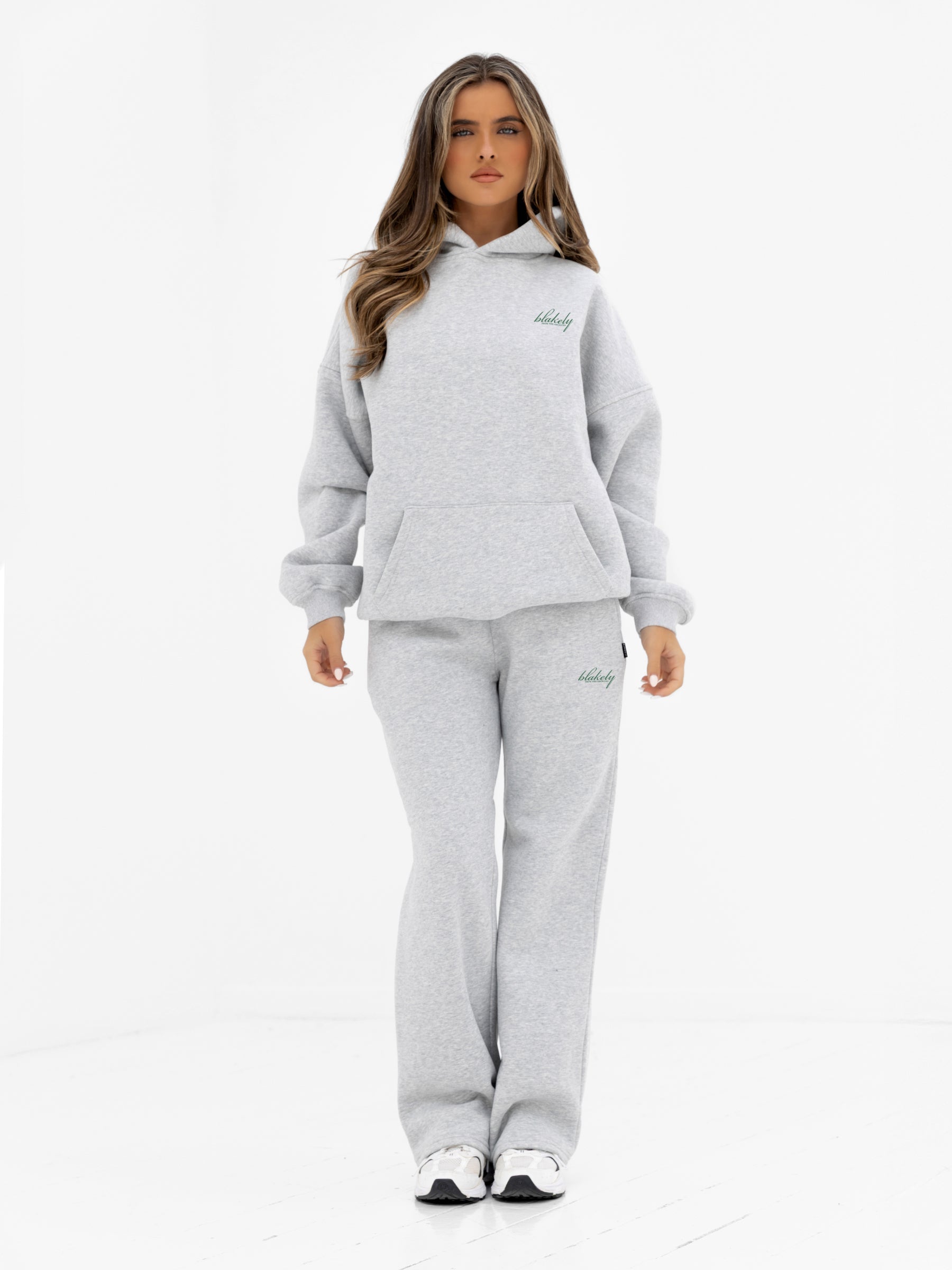 Our Georgia Hoodie in Marl Grey features an oversized fit and a roomy front pocket. making it ideal for everyday activities and lounging. It also showcases a script logo. which complements the rest of the collection.