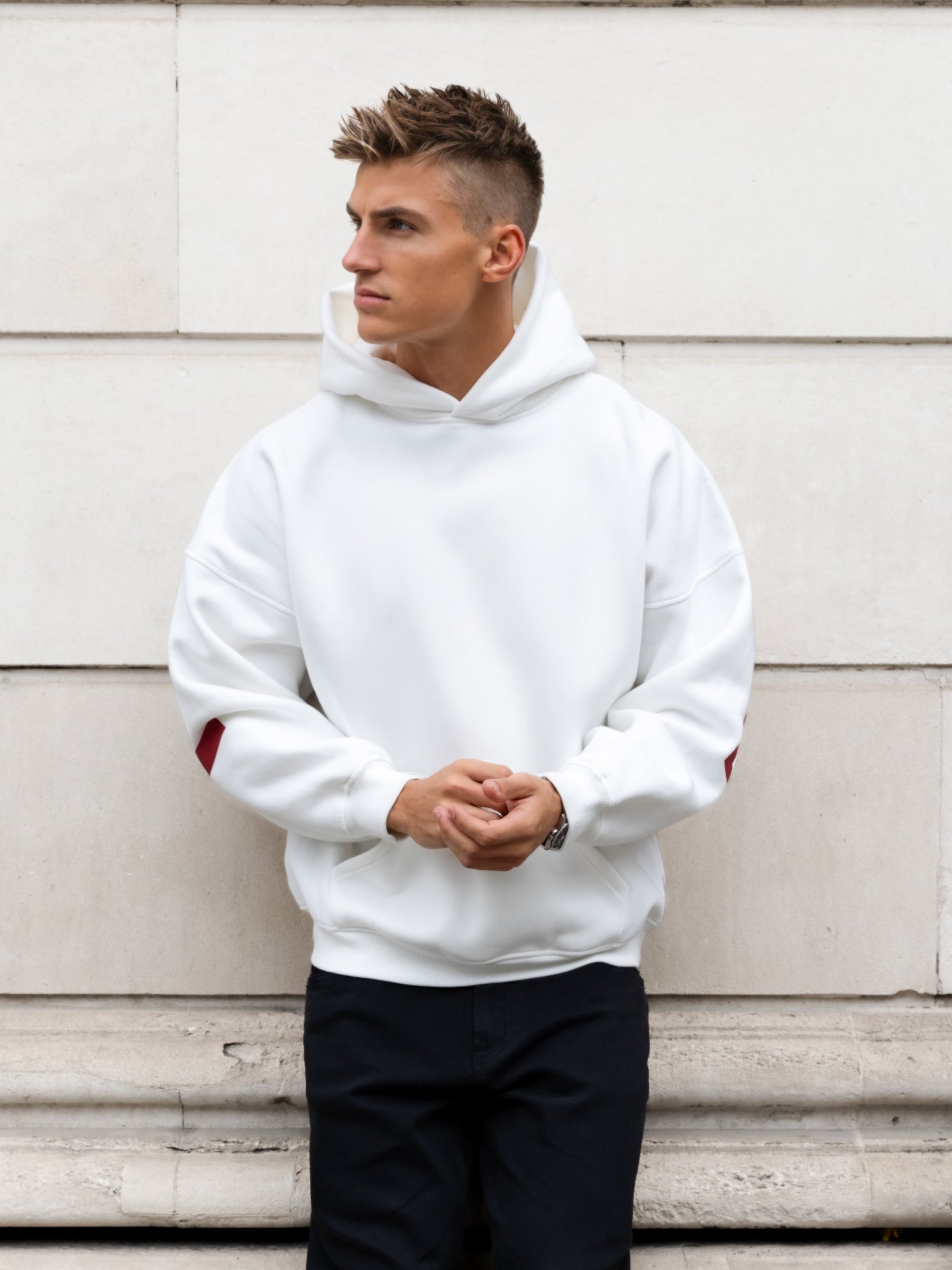 Our best-selling Idris Hoodie made from a soft cotton blend with an oversized fit. the hoodie features a ribbed hem and cuffs. as well as a large front pocket. It showcases our logo screen printed across the back and arms. offering a clean and bold representation of our brand.