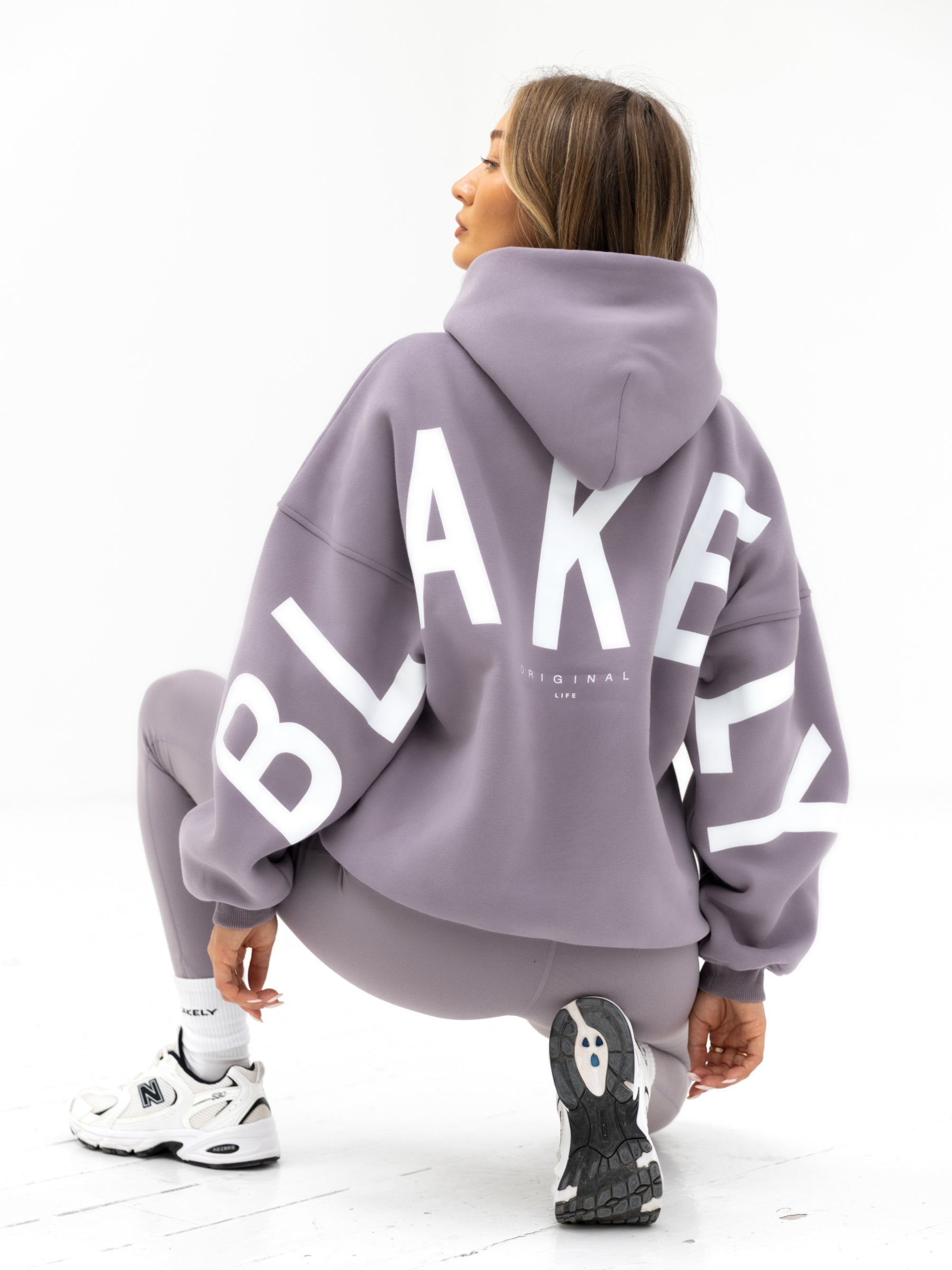 Your favorite hoodie in our core color-ways. Update your wardrobe with our Isabel Oversized Hoodie in Soft Purple. featuring our screen-printed Blakely branding in white on the back.