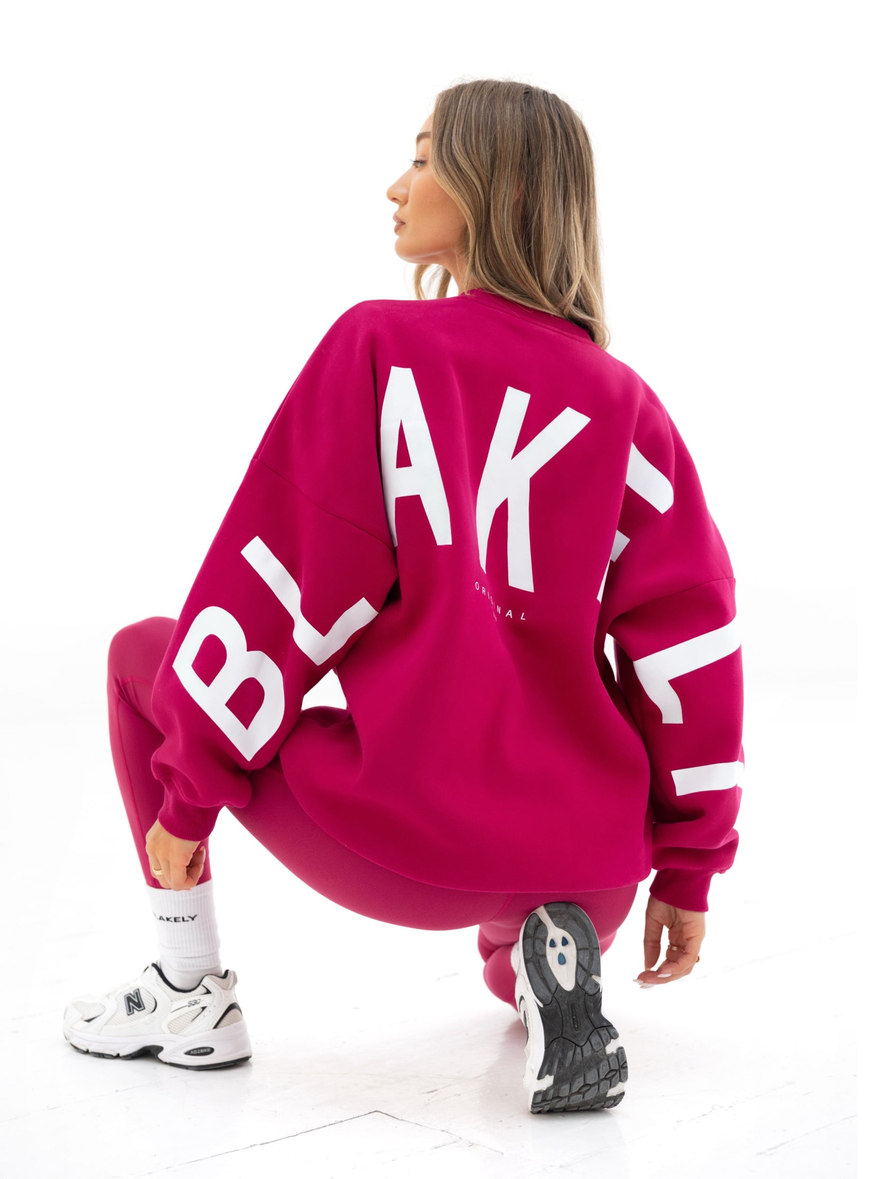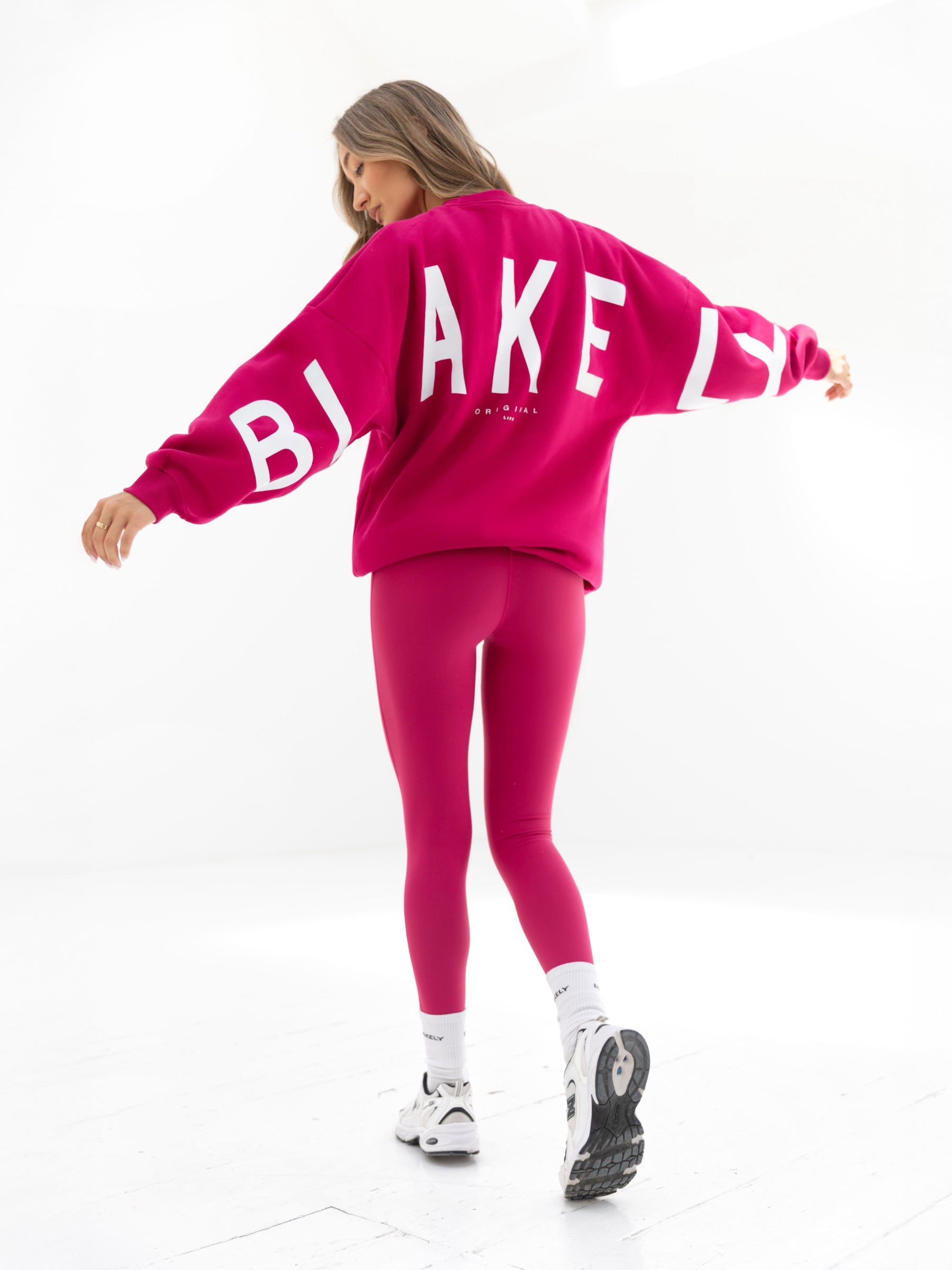 Your favorite Sweater in our core color-ways. Update your wardrobe with our Isabel Oversized Sweater in Ultra Pink. featuring our screen-printed Blakely branding in white on the back.
