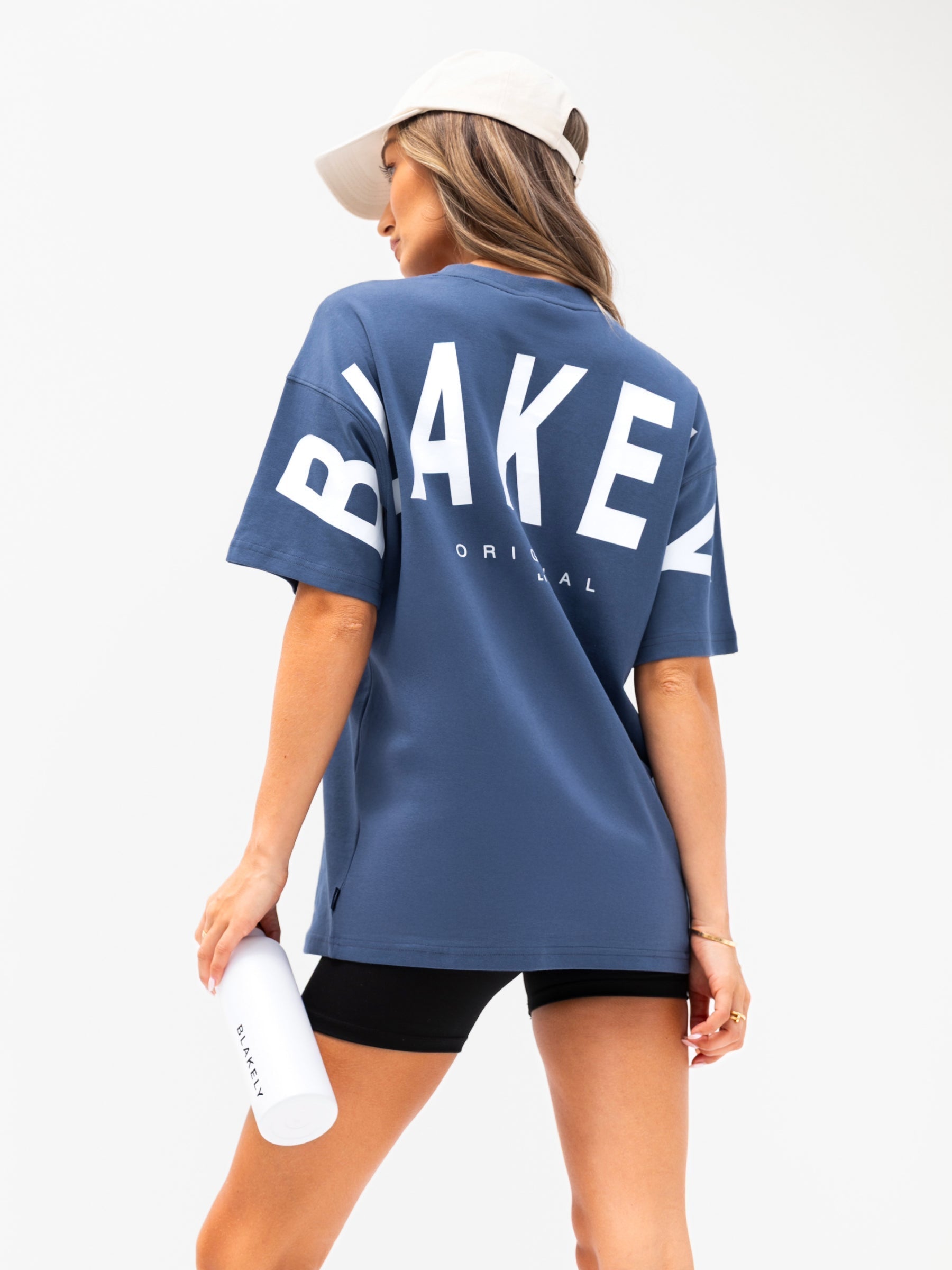 Introducing the Isabel oversized T-shirt in Blue. This T-shirt is a reimagined version of your favourite Isabel hoodie. It features an oversized silhouette and is crafted from a soft cotton blend for ultimate comfort. The back showcases our signature Blakely branding.