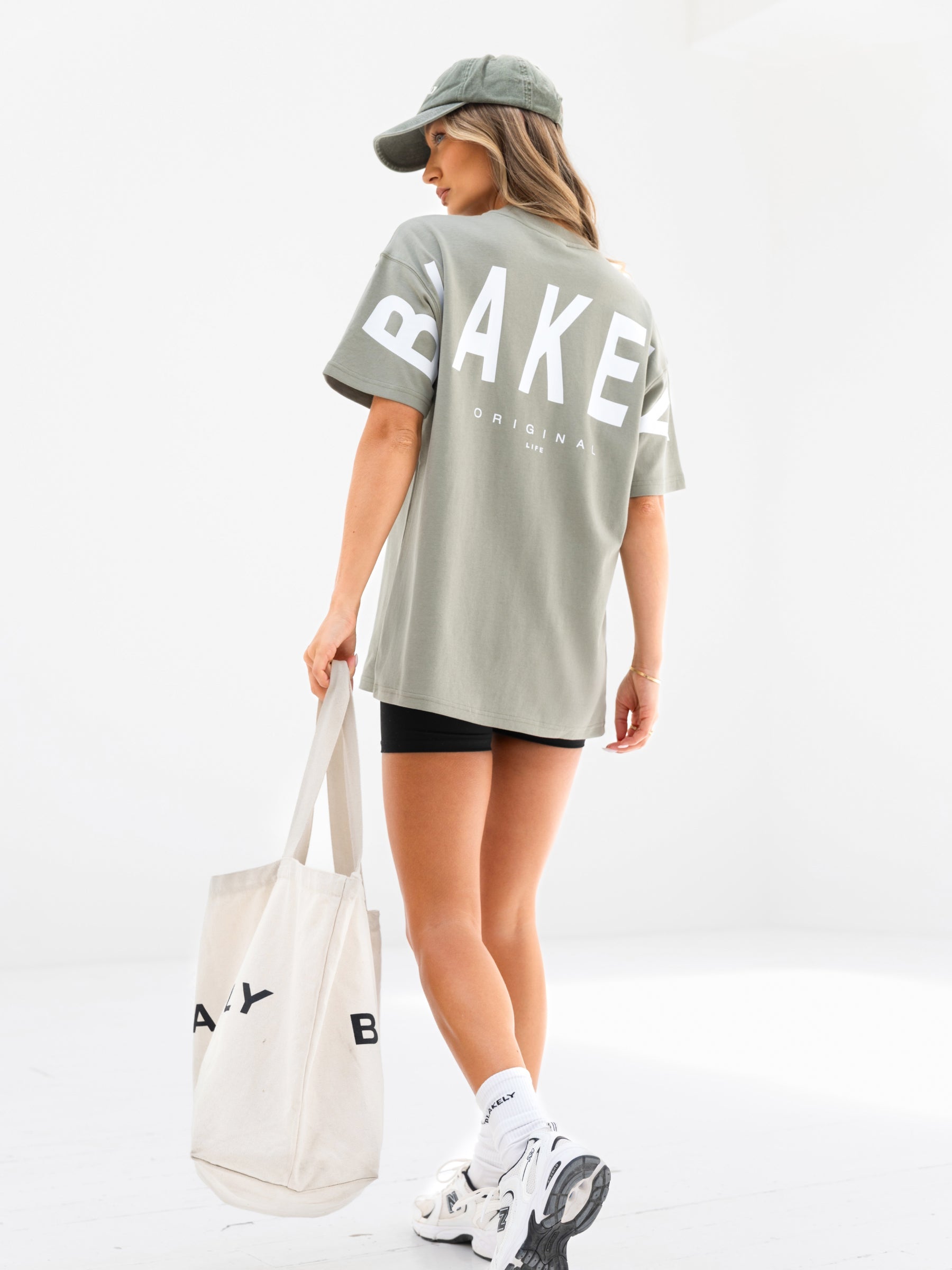 Introducing the Isabel oversized T-shirt in olive. This T-shirt is a reimagined version of your favourite Isabel hoodie. It features an oversized silhouette and is crafted from a soft cotton blend for ultimate comfort. The back showcases our signature Blakely branding.
