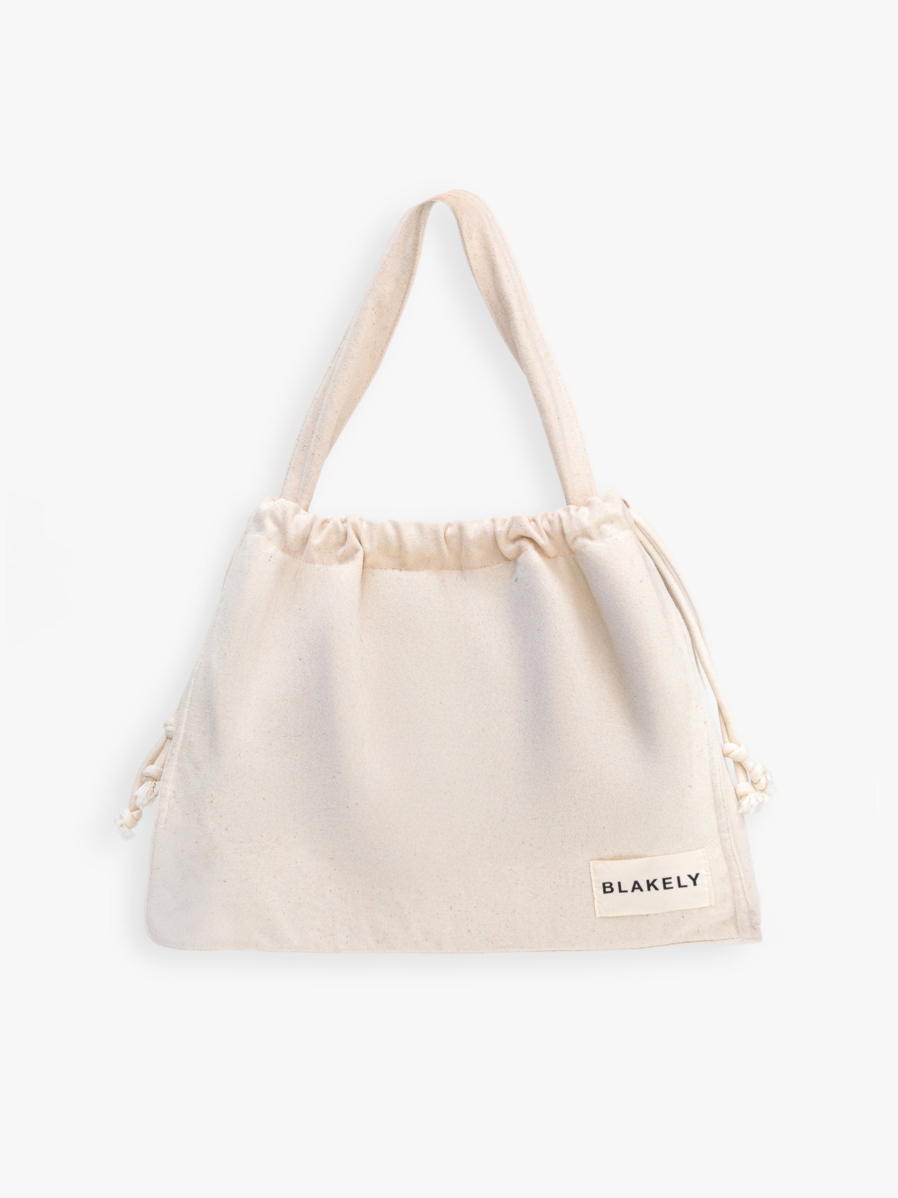 Our Blakely Label Tote designed to move with you. The slouchy shape can be adjusted with the drawstring detail. while the magnetic clasp keeps your things secure. Finished with subtle branding and a leather card holder inside for everyday ease.