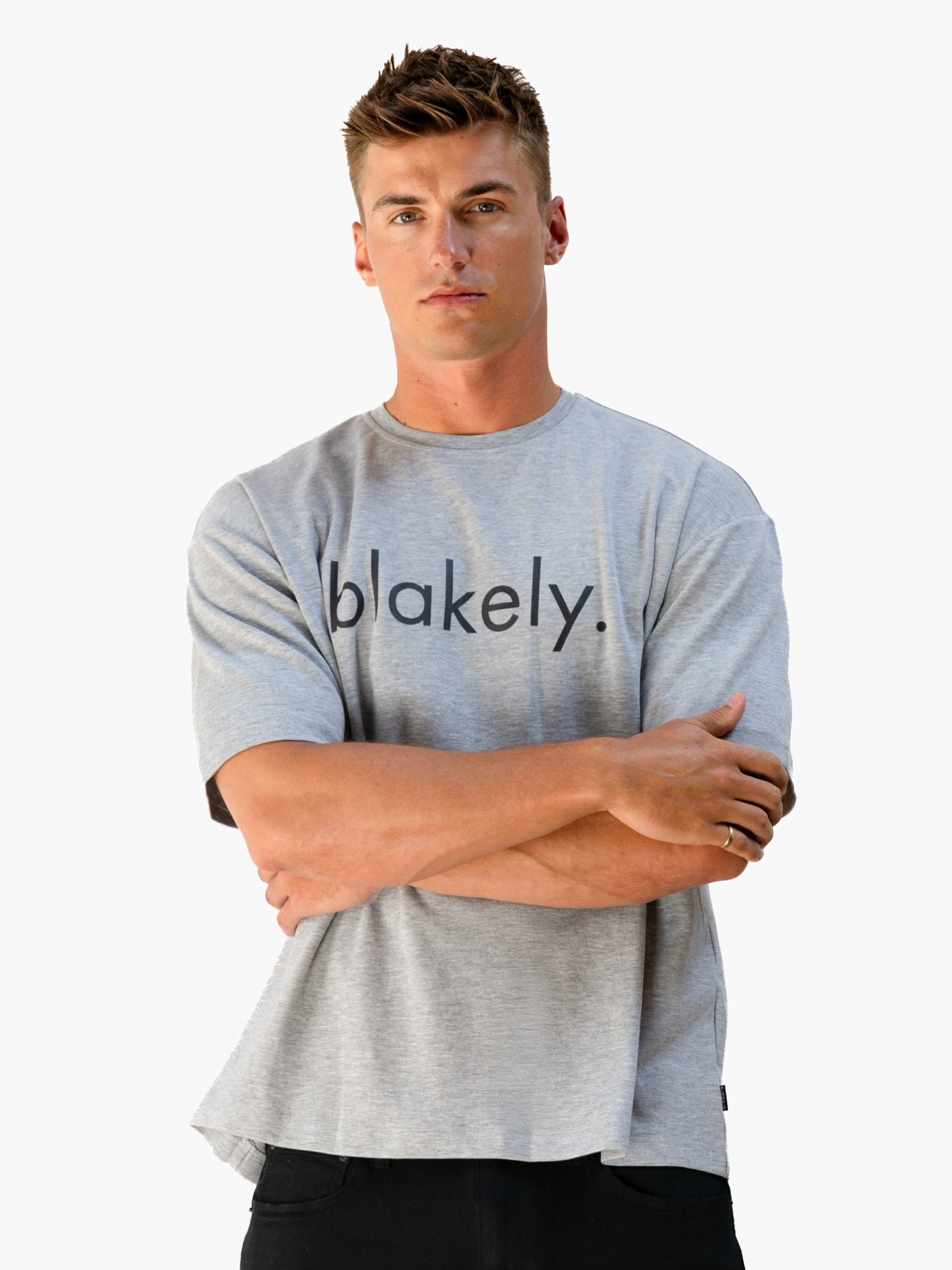 Introducing our Logo Unfitted T-shirt in Marl Grey. crafted from a soft cotton blend and designed with a loose shape for ultimate comfort. This T-Shirt features our thinner screen-printed Blakely logo in a new font on the front.