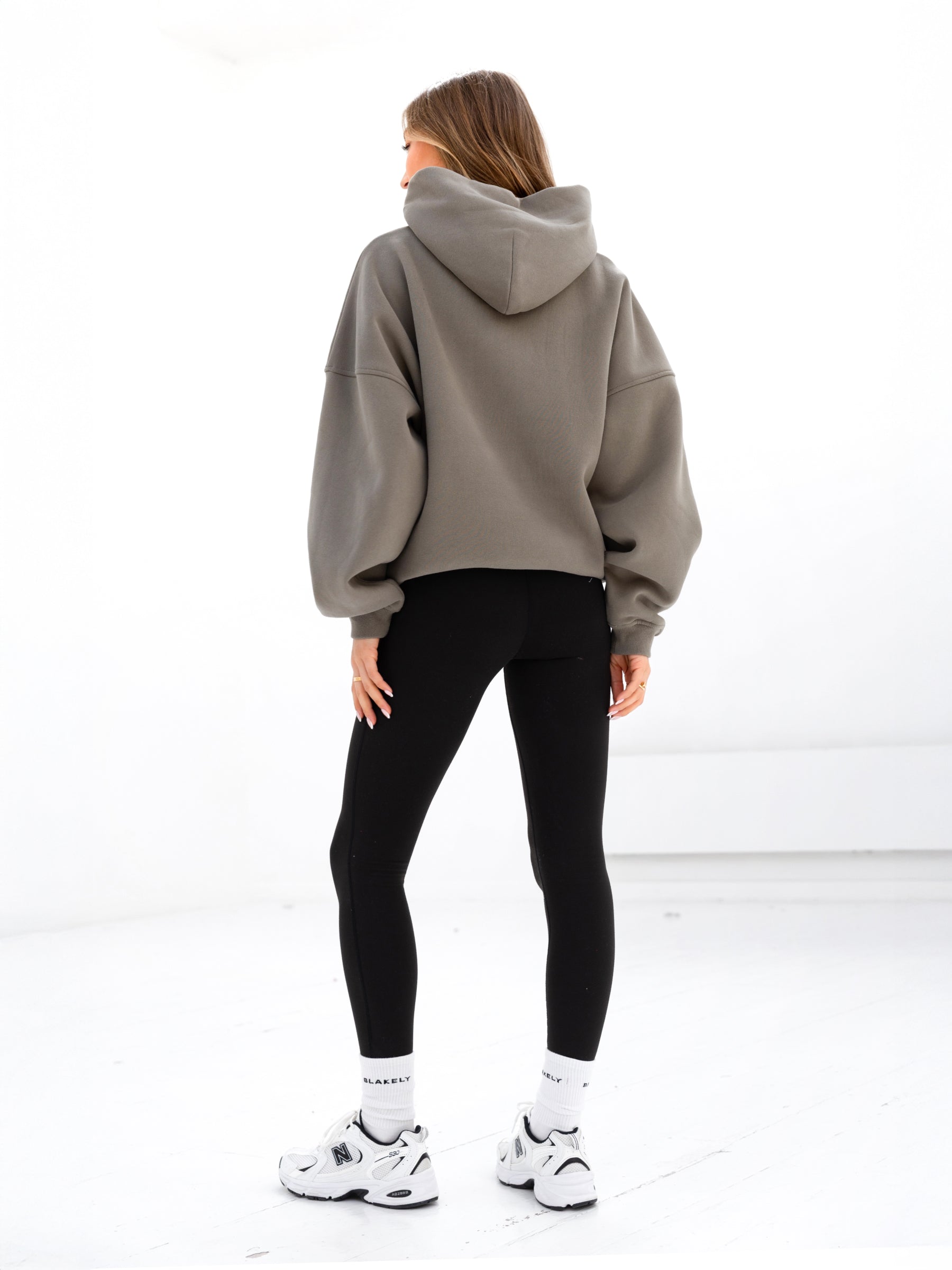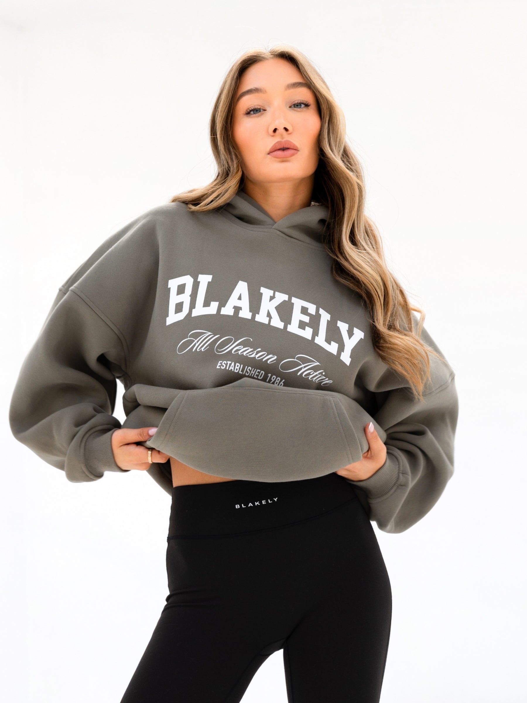 Our Melrose Hoodie in Safari Green features an oversized fit and a roomy front pocket. making it ideal for everyday activities and lounging. It also showcases our All Seasons Active Branding which complements the rest of the collection.