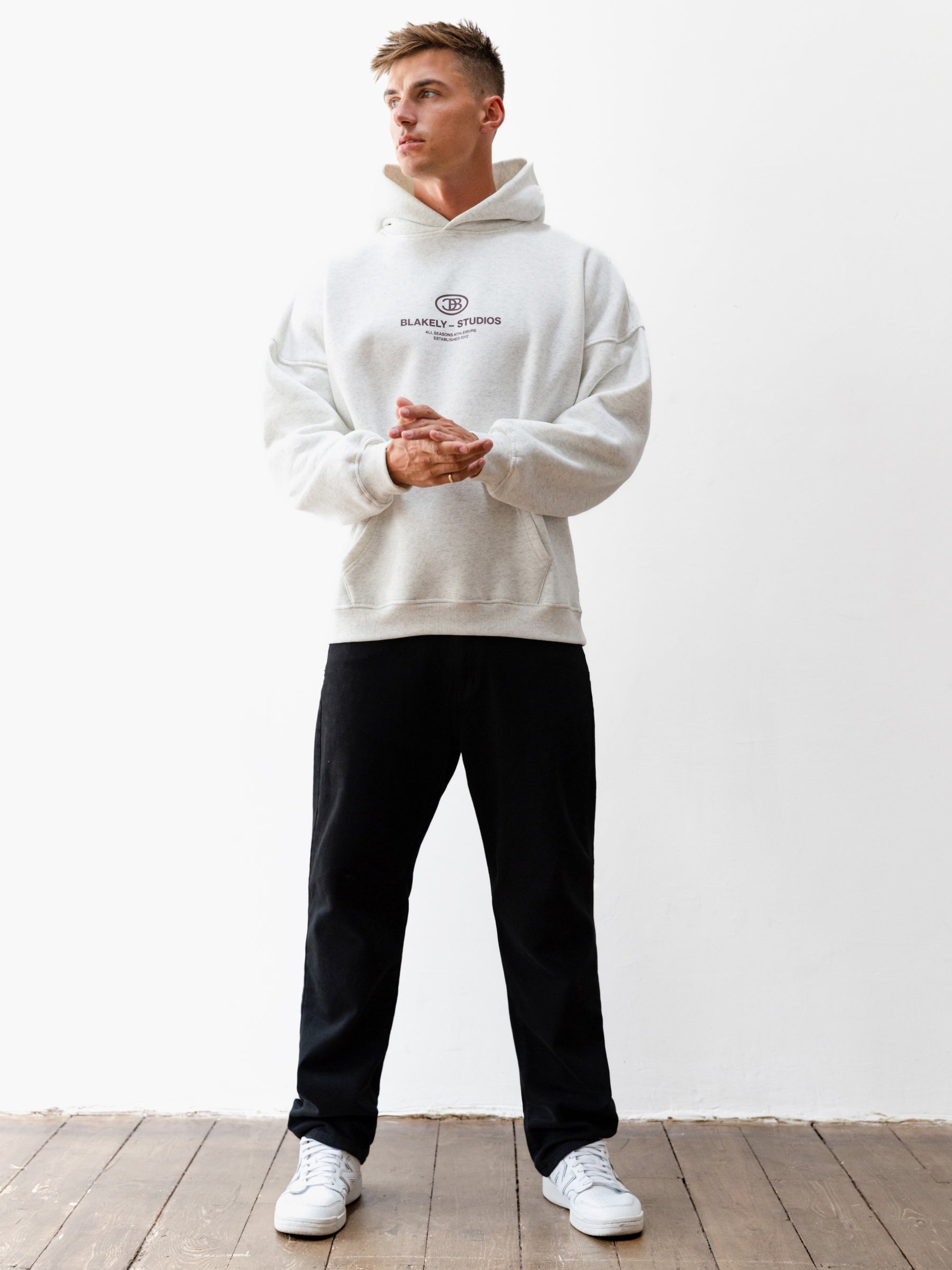 Our Mercer Hoodie in Marl White features a relaxed fit and a roomy front pocket. making it ideal for everyday activities and lounging. It also showcases our Initial Branding in bold. which complements the rest of the collection.
