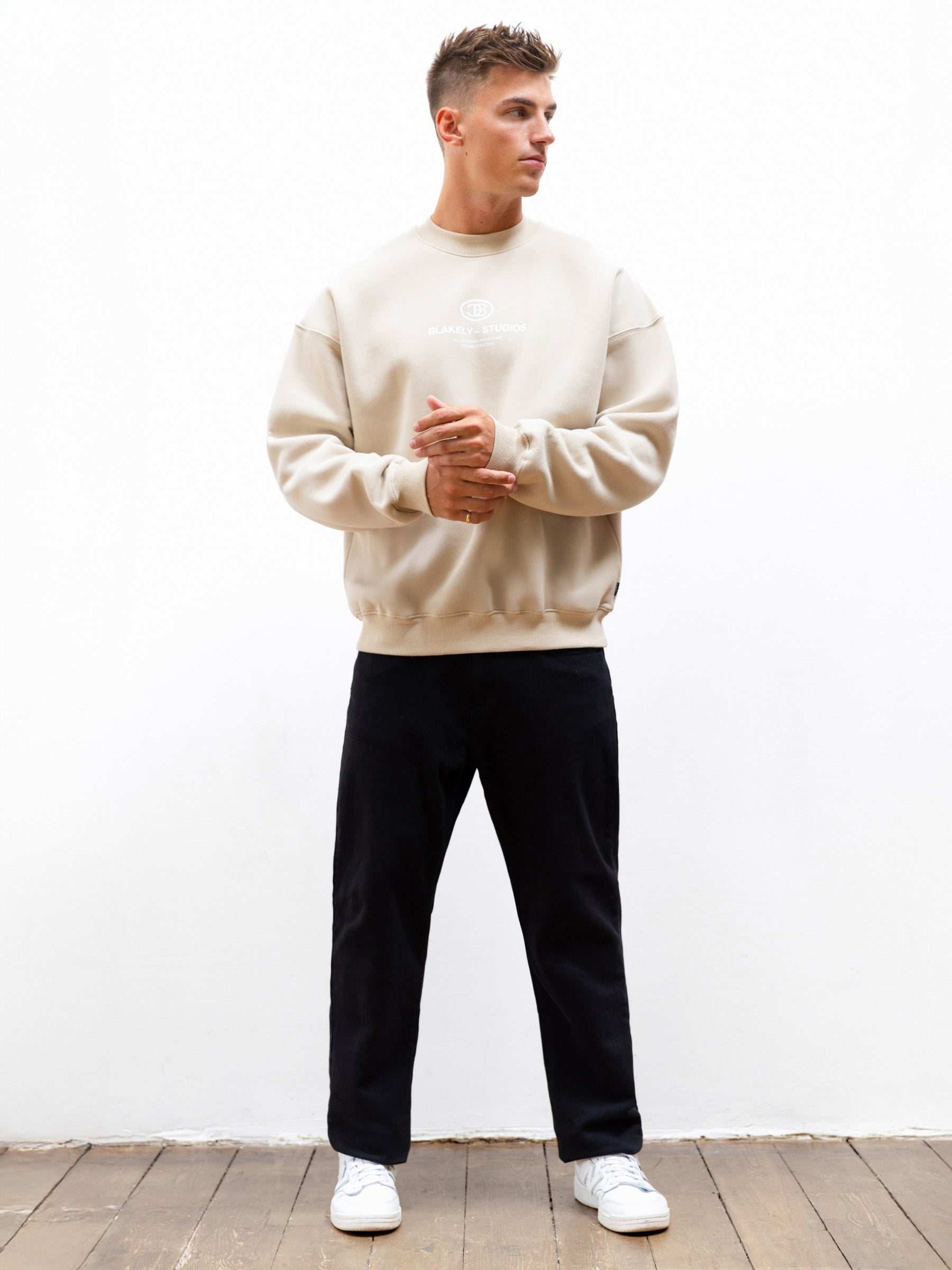 Part of this collection is our Mercer Sweater in Dune. This sweater is crafted from a soft cotton blend with a relaxed fit. It has ribbed hems and cuffs and a crew neck design. It has been finished with our Initial logo on the front.