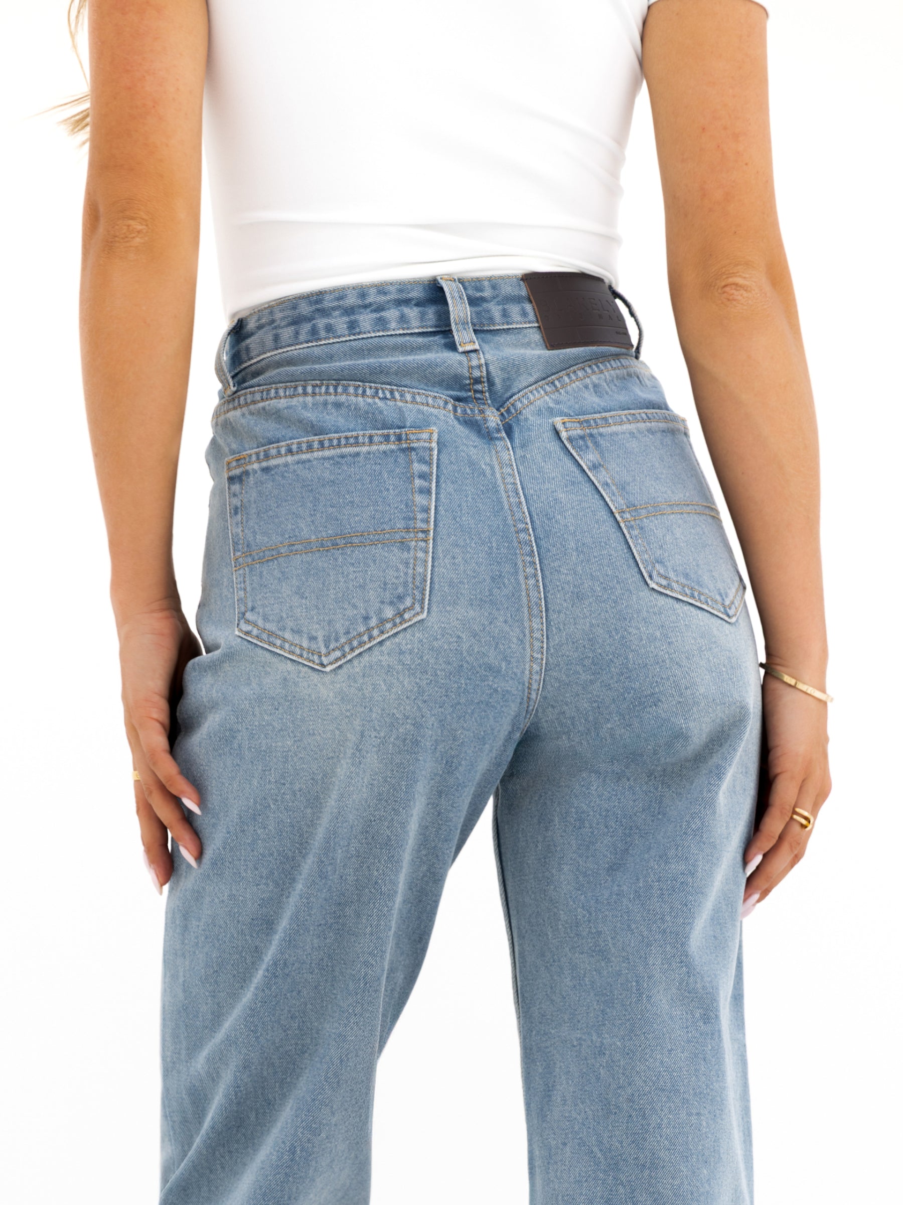 Our Blakely Mom Jeans have a High-rise. straight-leg. and relaxed through the hip. Made from durable. rigid denim that keeps its shape. wear after wear. Easy to style with everything from oversized knits to your favorite tee. they're the ultimate throw-on-and-go denim for every day.