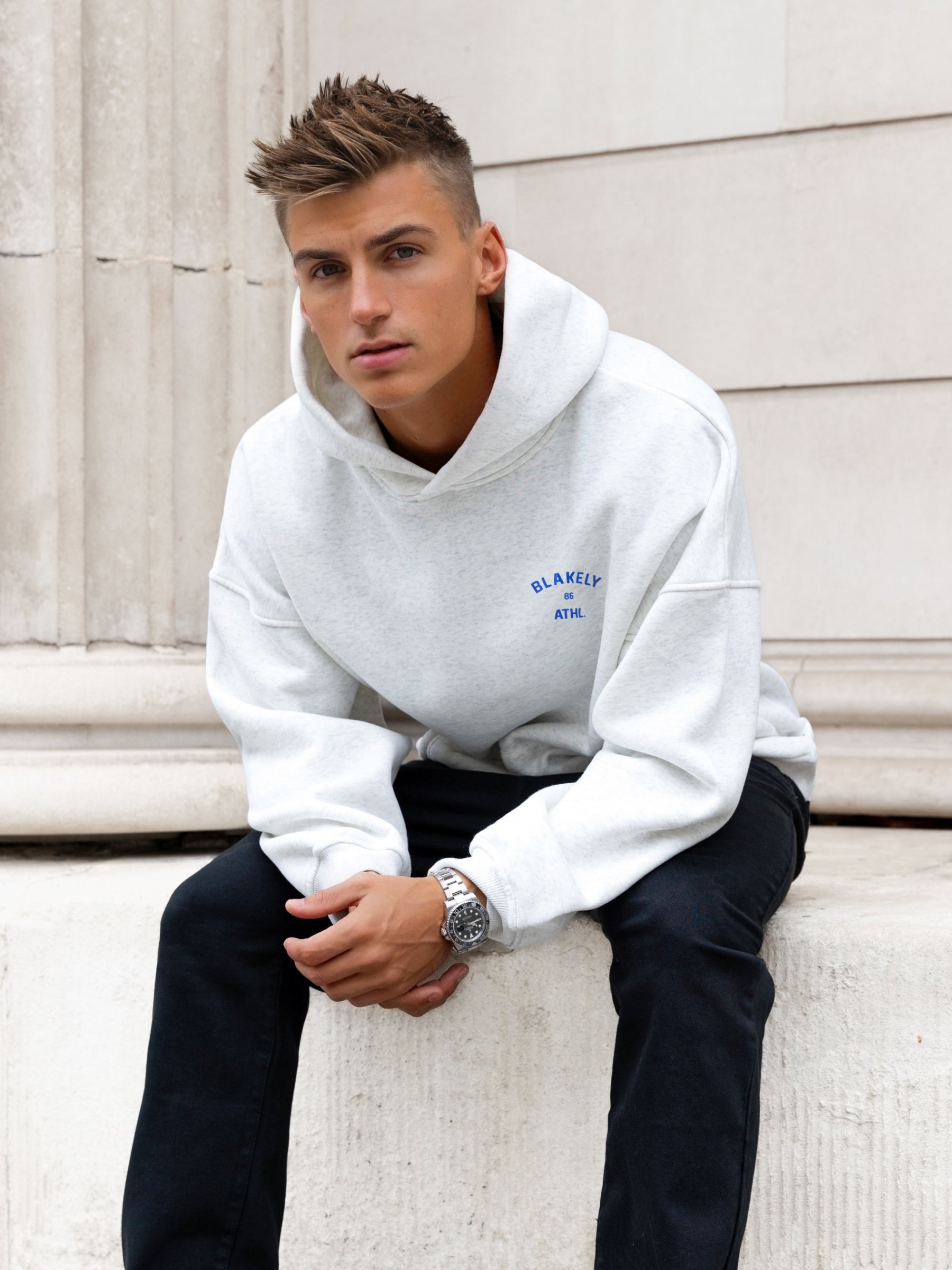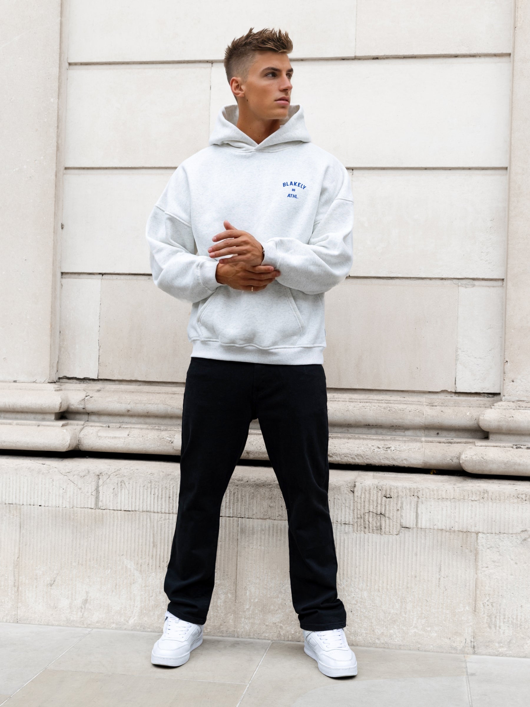 Niko Relaxed Hoodie - Marl White & Cobalt