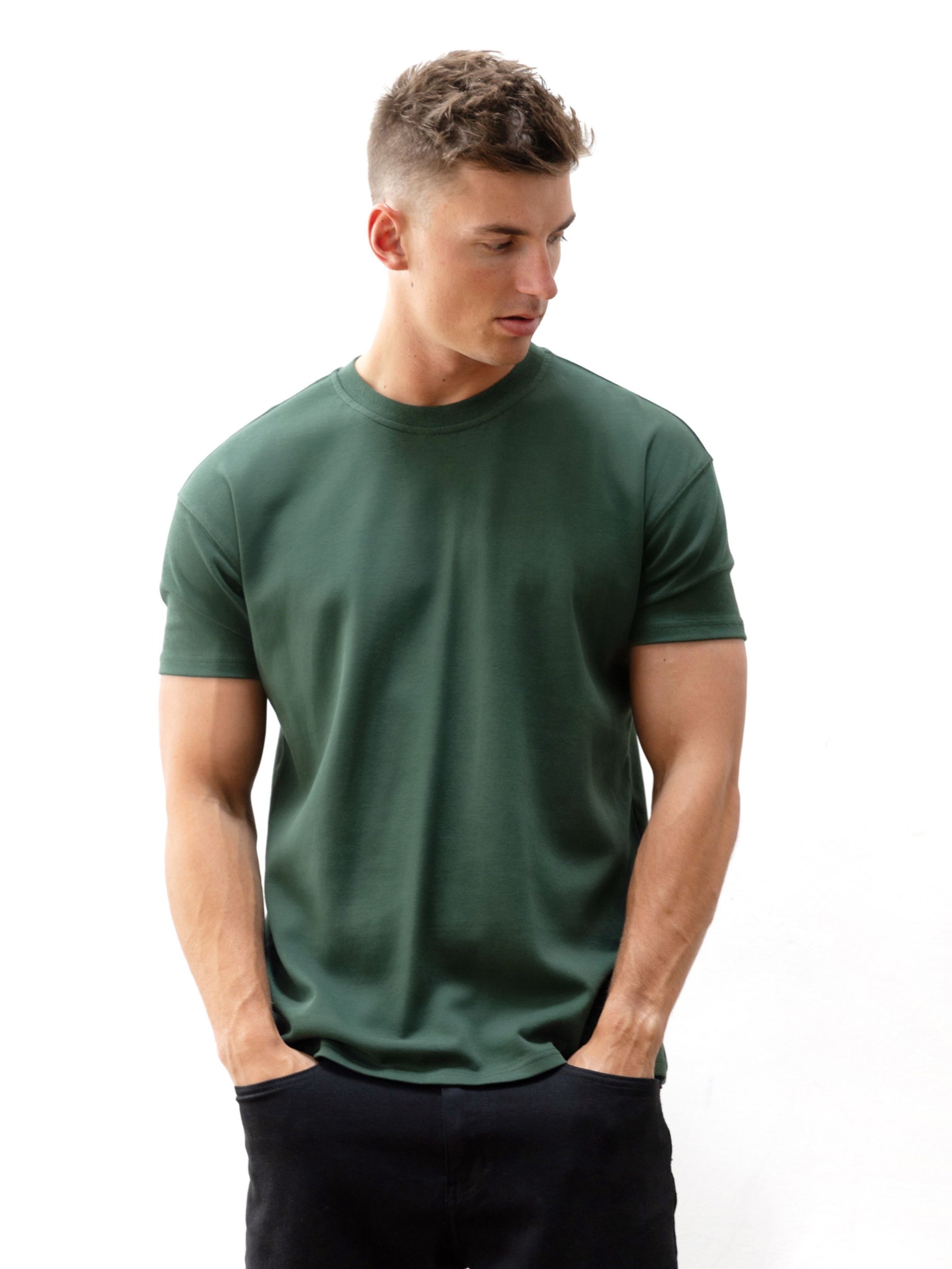 Introducing our Otis T-shirt in Forest Green. finished with clean hems and minimalist tab detailing. This is your core staple. elevated just enough.