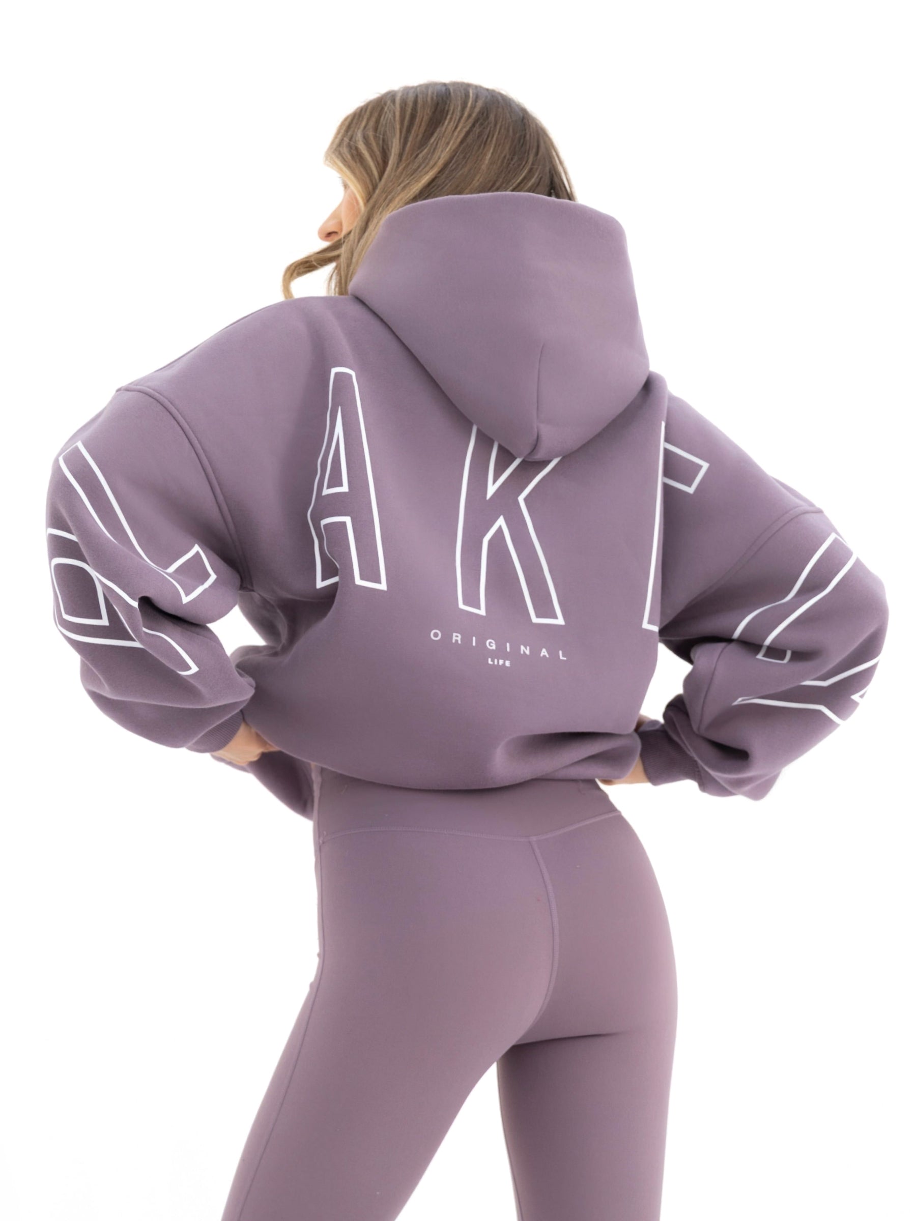 Your favorite hoodie now comes in an outline version. Update your wardrobe with our Outline Isabel Oversized Hoodie in Grape. featuring our screen-printed outline Blakely branding in white on the back.