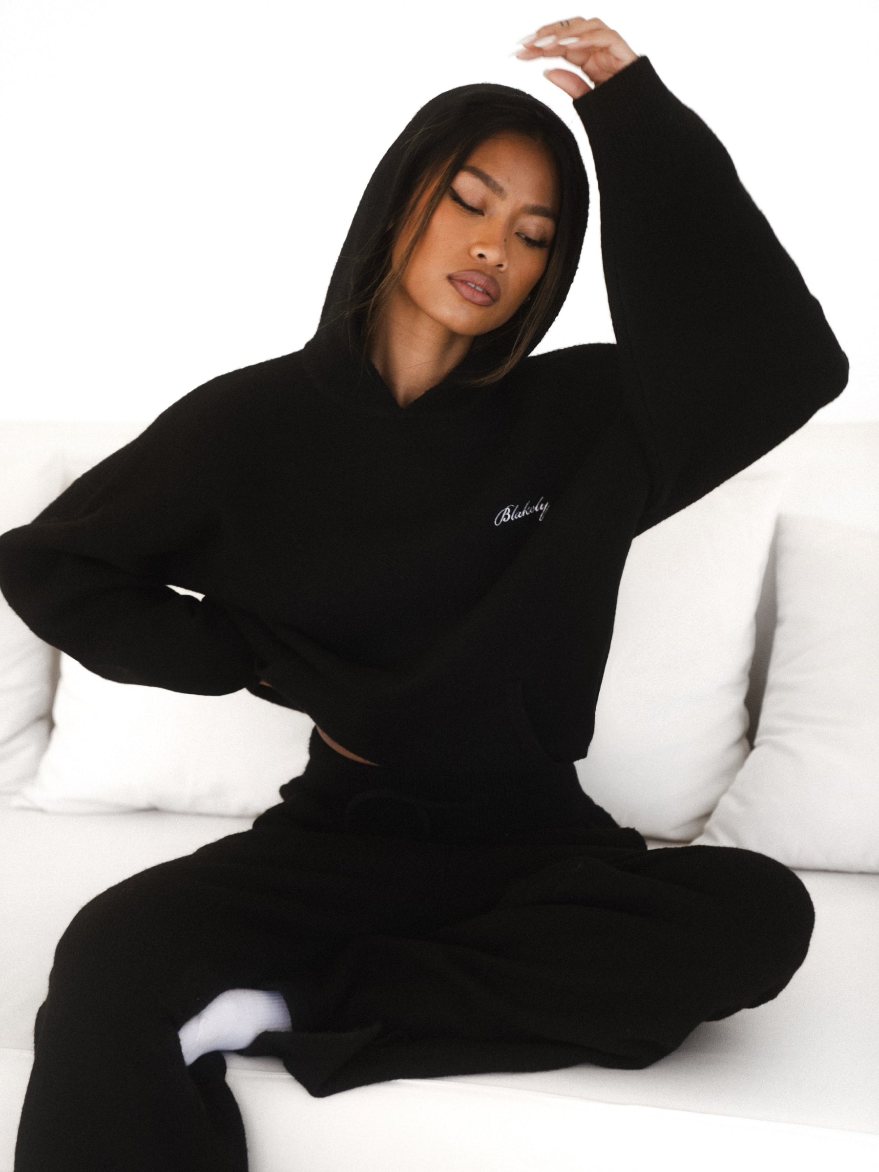 Part of this collection is our Oversized Knitted Hoodie in Black. This Hoodie is crafted from soft knitted fabric with an oversized fit. It has been finished with embroidered Blakely branding.