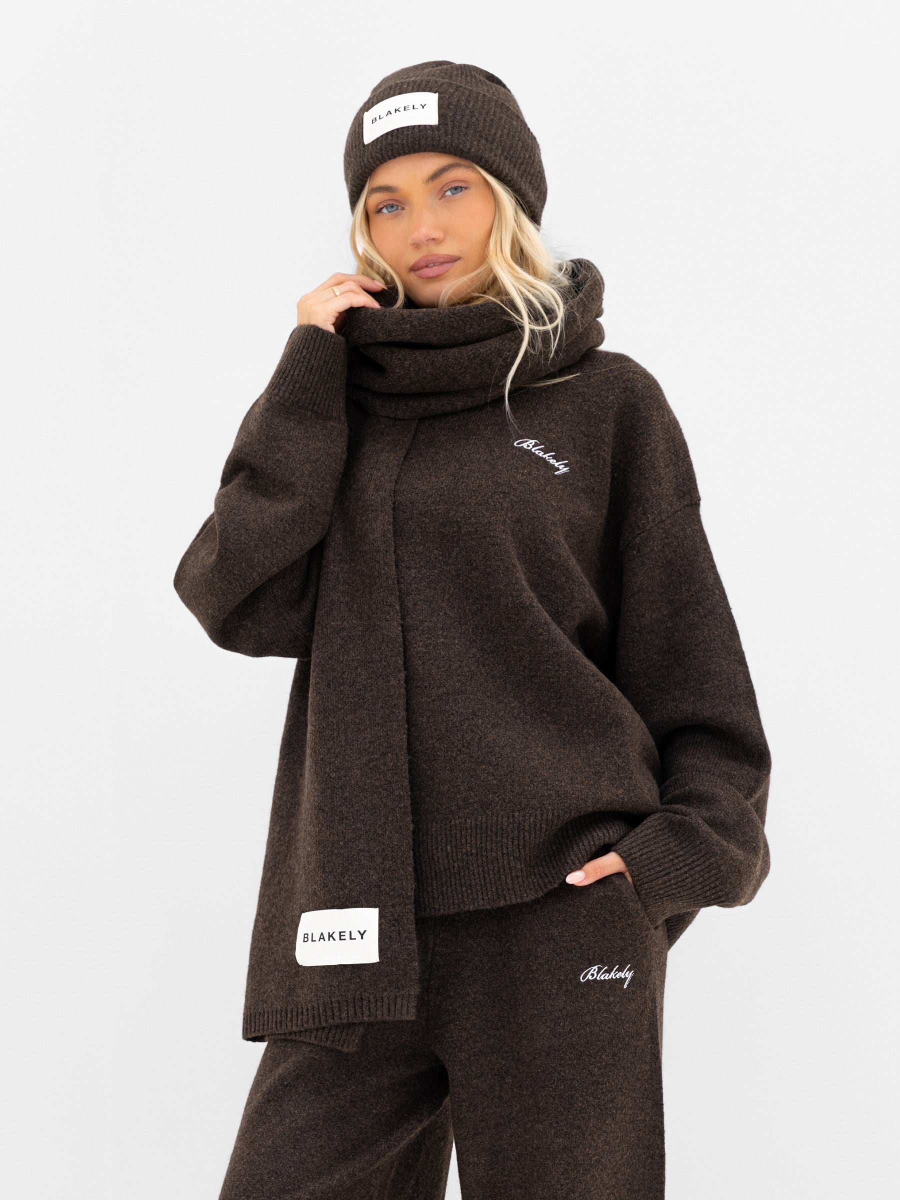 Part of this collection is our Oversized Knitted Sweater in Chocolate Brown. This Sweater is crafted from soft knitted fabric with an oversized fit. It has been finished with embroidered Blakely branding on the front.