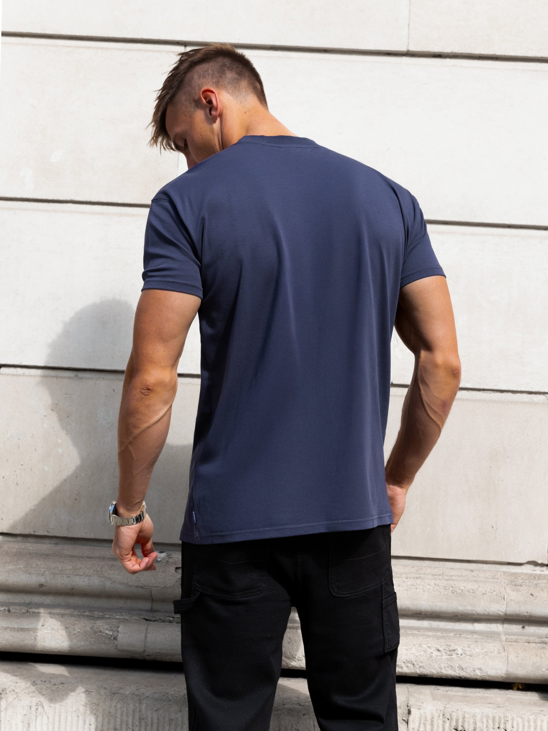 Introducing our Rhys T-Shirt in True Navy. crafted from a soft cotton blend and designed with a relaxed fit for comfort. This T-Shirt features our small Blakely logo printed on the front.