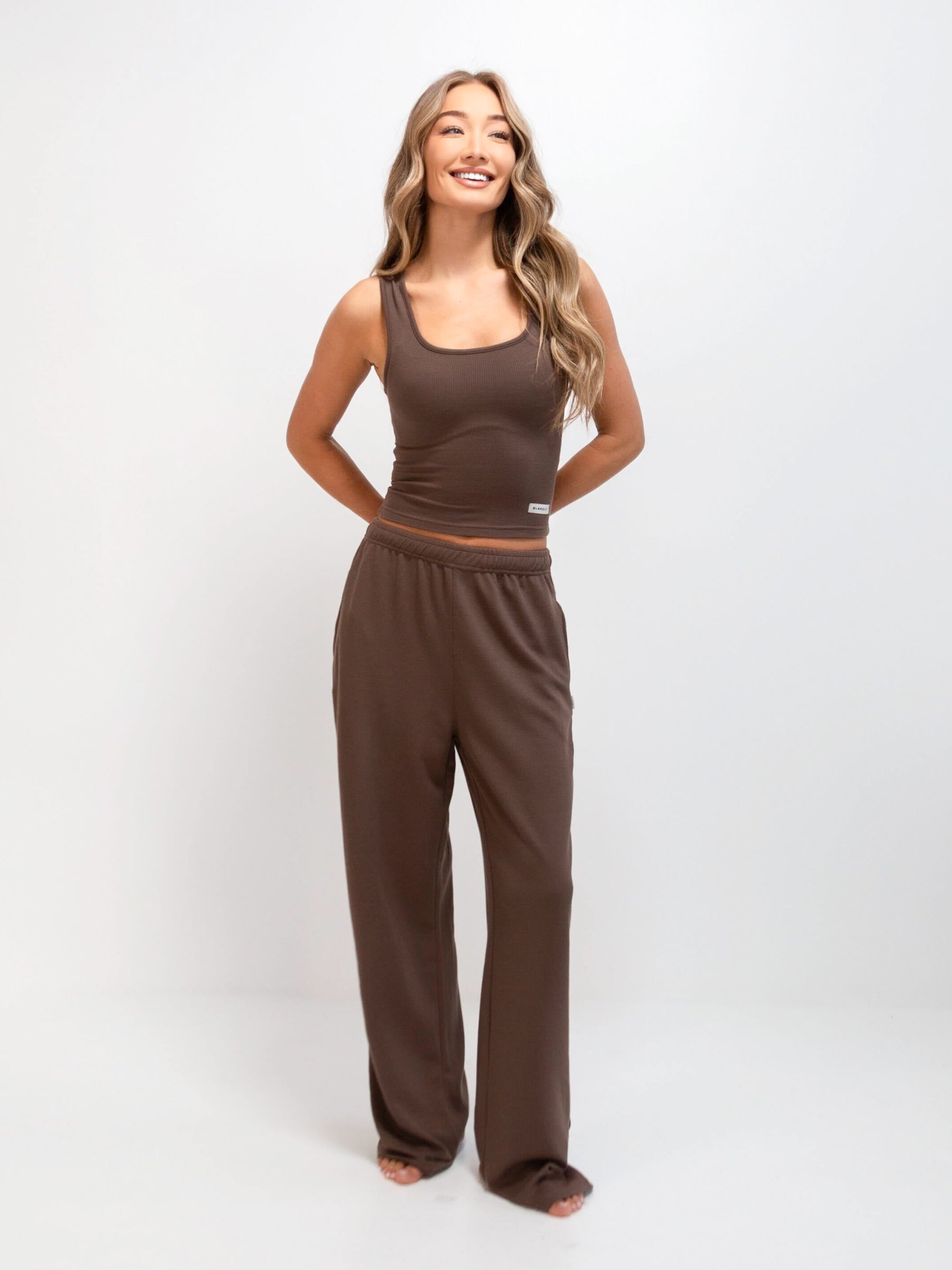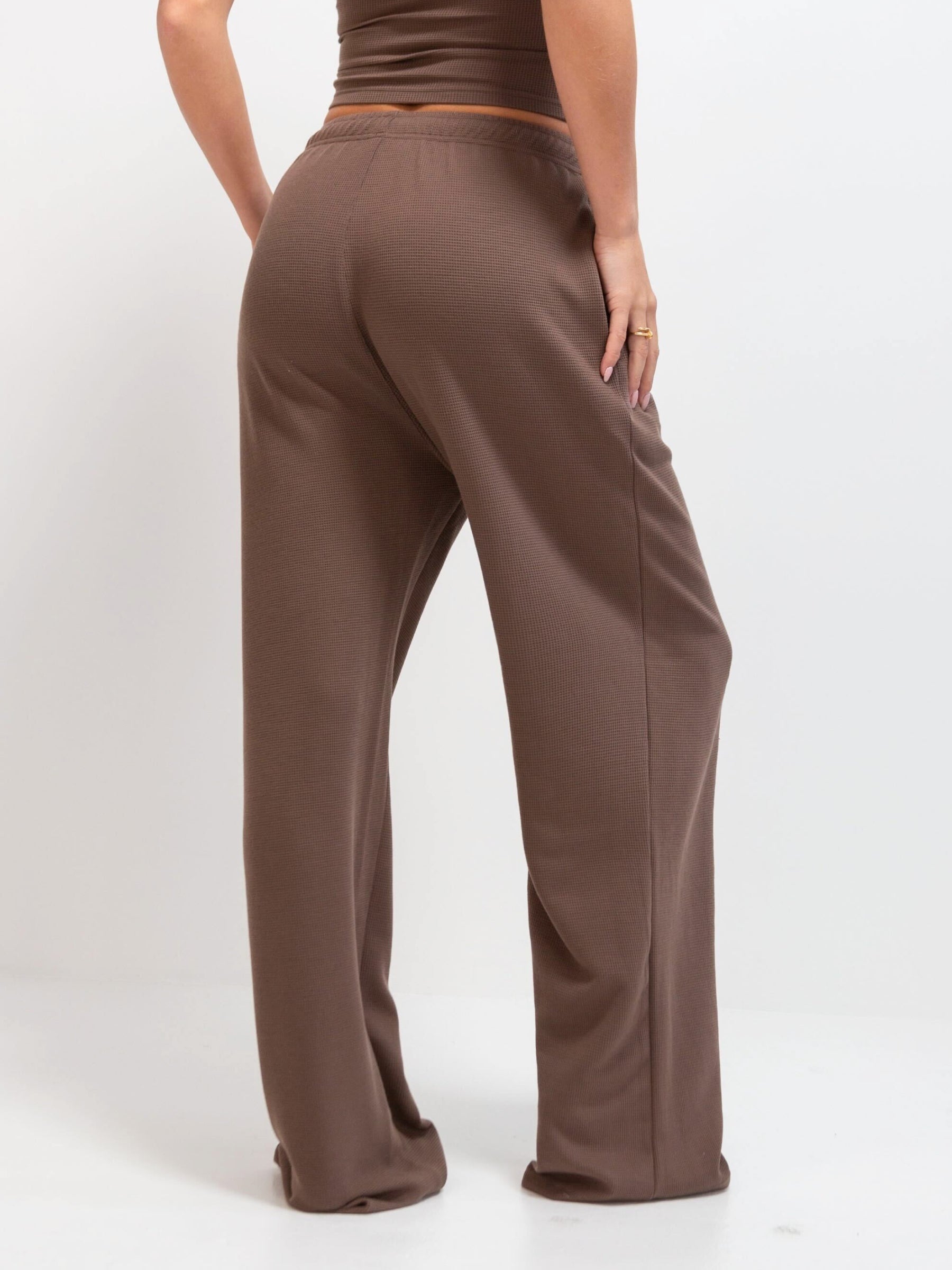 Our Soft Waffle Trousers in Brown are crafted from a soft waffle knit fabric and feature a relaxed fit. They are finished with a small Blakely label down the side seam and side pockets. Pair them with our Soft Waffle Vest and Cardigan for the perfect lounging look.