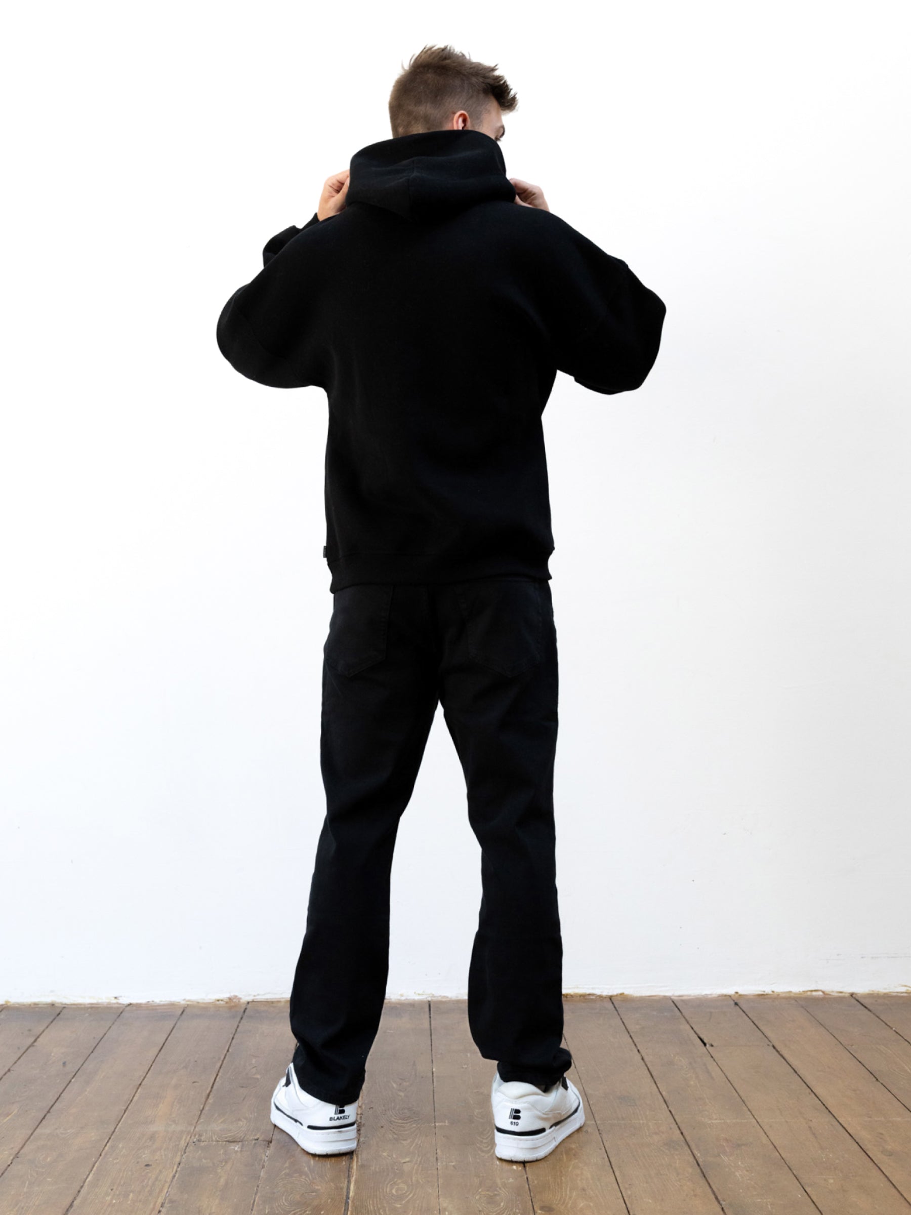Our Studio Hoodie in Tonal Black features a relaxed fit and a roomy front pocket. making it ideal for everyday activities and lounging. It also showcases our logo in a new font. which complements the rest of the collection.