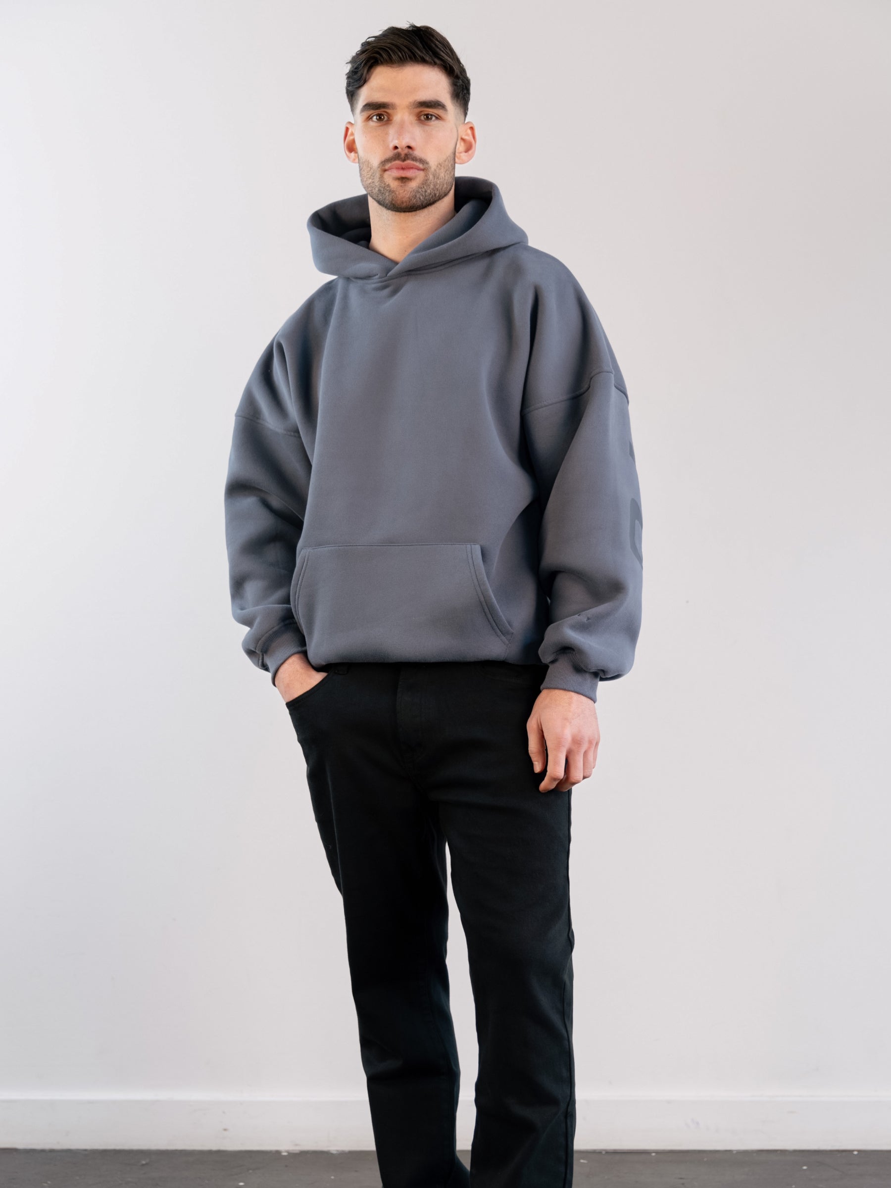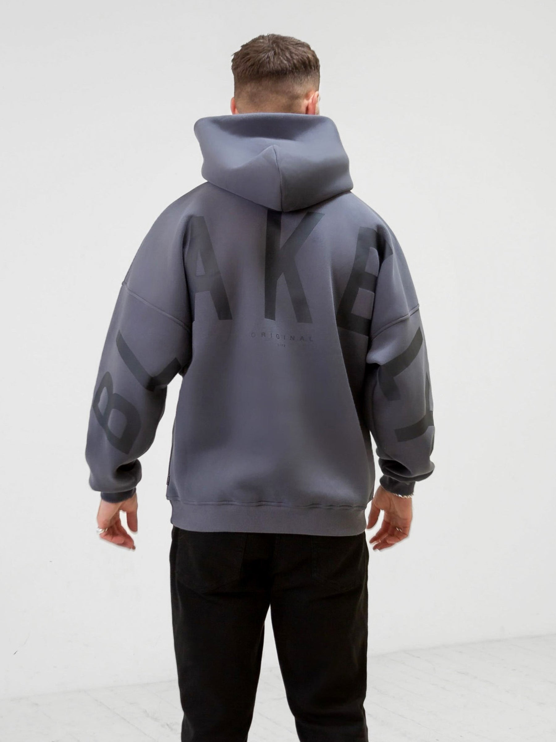 Our best-selling Idris Hoodie is now in a tonal version. Made from a soft cotton blend with an oversized fit. the hoodie features a ribbed hem and cuffs. as well as a large front pocket. It showcases our logo screen printed across the back and arms. offering a clean and bold representation of our brand.