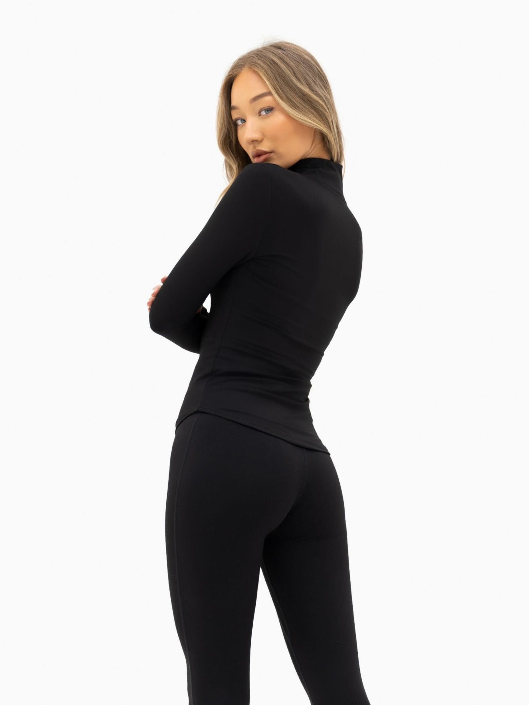 The Ultimate Active Jacket in Black is crafted from lightweight. four-way stretch fabric. It has a complete zip-up design and long sleeves. The compressive fabric provides ultimate contouring for a perfect fit. It is designed to be worn anywhere. anytime. If you are in between sizes. we suggest sizing up.