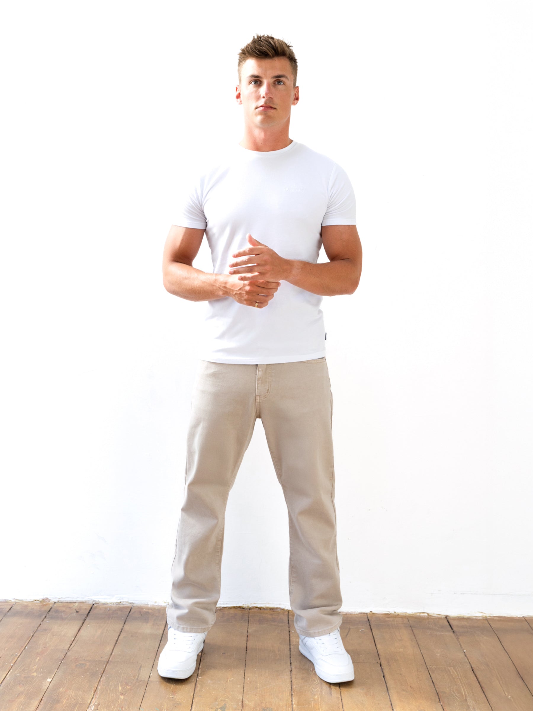Introducing our Vol.15 Loose Fitting Jeans in Tan. These jeans feature a relaxed fit with a wide leg. Made from durable denim. they are designed with side and rear pockets and are finished with a branded badge. Pair these jeans with one of our relaxed-fit jumpers or hoodies for a complete look.